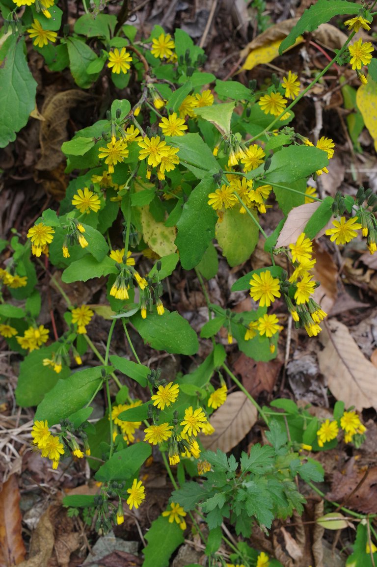 撮影雑記: ヤクシソウは、道端のがけ、畑の土手など、落ち葉の積もった場所や、ちょっと土が むき出しになったような場所によく咲いています。 花は、オニタビラコやニガナに似ていますが、つぼみが下を向いて、うなだれたような、 独特の姿をしているので、一目でヤクシソウとわかります。 ![]() 秋の中ごろから、晩秋になるまで咲いています。 ![]() 通りがかった道端で、小さな株や、大きめの株など、たくさん咲いていました。 ![]() |