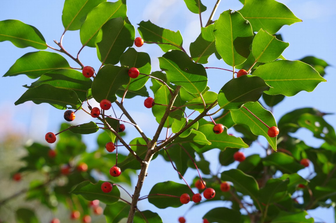 撮影雑記: コナラの紅葉を見て、さらに足を進めてゆくと、いっぱいの実をつけたソヨゴの木が、 次々に現れてきました。 日差しを浴びて日に透ける緑の葉っぱと、赤い実の対比は、ファインダーで覗くと、ほんとにきれいです。 ![]() コナラの紅葉をバックに。 ![]() 真下から。 ![]() トップの写真と同じ枝です。 こんなに実が付いたソヨゴは久しぶりと書きましたが、初めてかも。 ![]() ソヨゴは、植物を覚え始めた頃、なかなか覚わらなかった木の種類の中で、真っ先に覚えた木です。 葉っぱが固いので、揺するとカサカサ音がするんですよね。 そんなこともあって、ソヨゴは、ちょっと特別に愛着がわく木なんです。 ![]() |