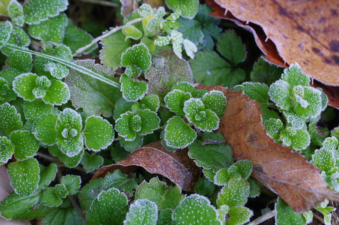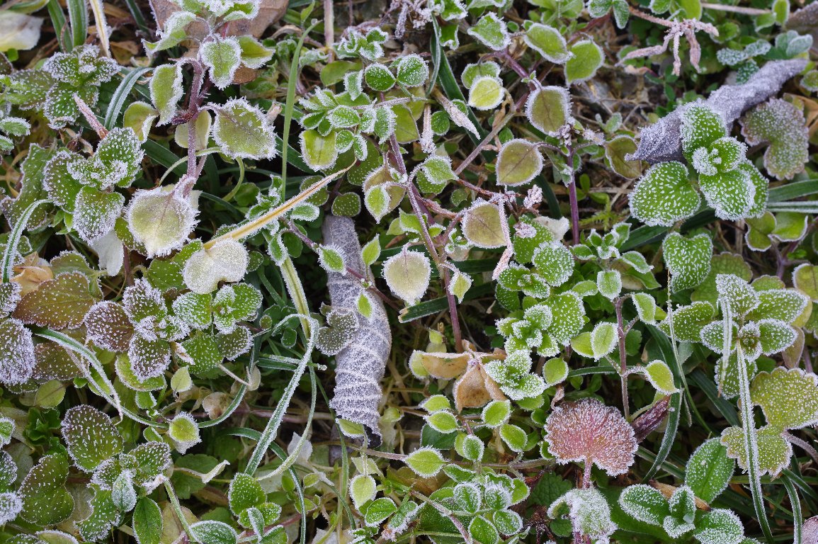 田畑に茂る草たちは、冬の間は、ロゼッタと呼ばれる小さな葉っぱになって、春に備える。 そんな葉っぱに、霜が降りる様は美しい。 特に、うっすらと積もった12月の霜は、とても繊細だ。 |