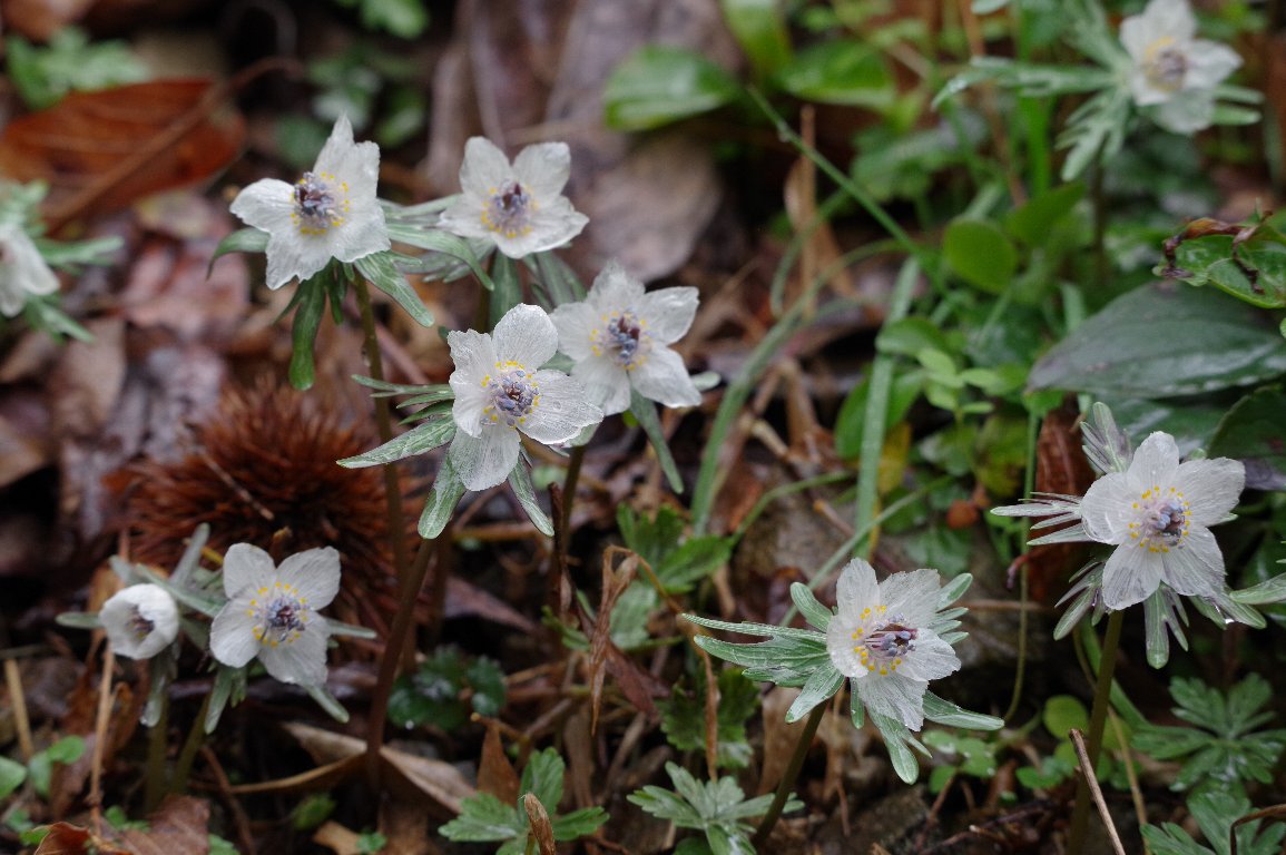 この日のセツブンソウは、ぼそぼそ降る雨の中、しっとりと濡れていた。 花びらも、少し半透明になっている。 一見、ひ弱そうに見えるが、雪にも、霜にも、雨にも強い花なのだ。 |