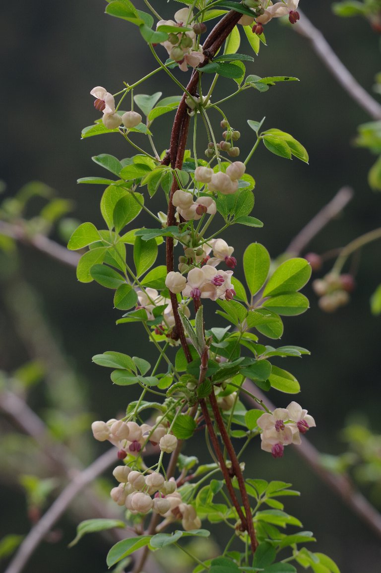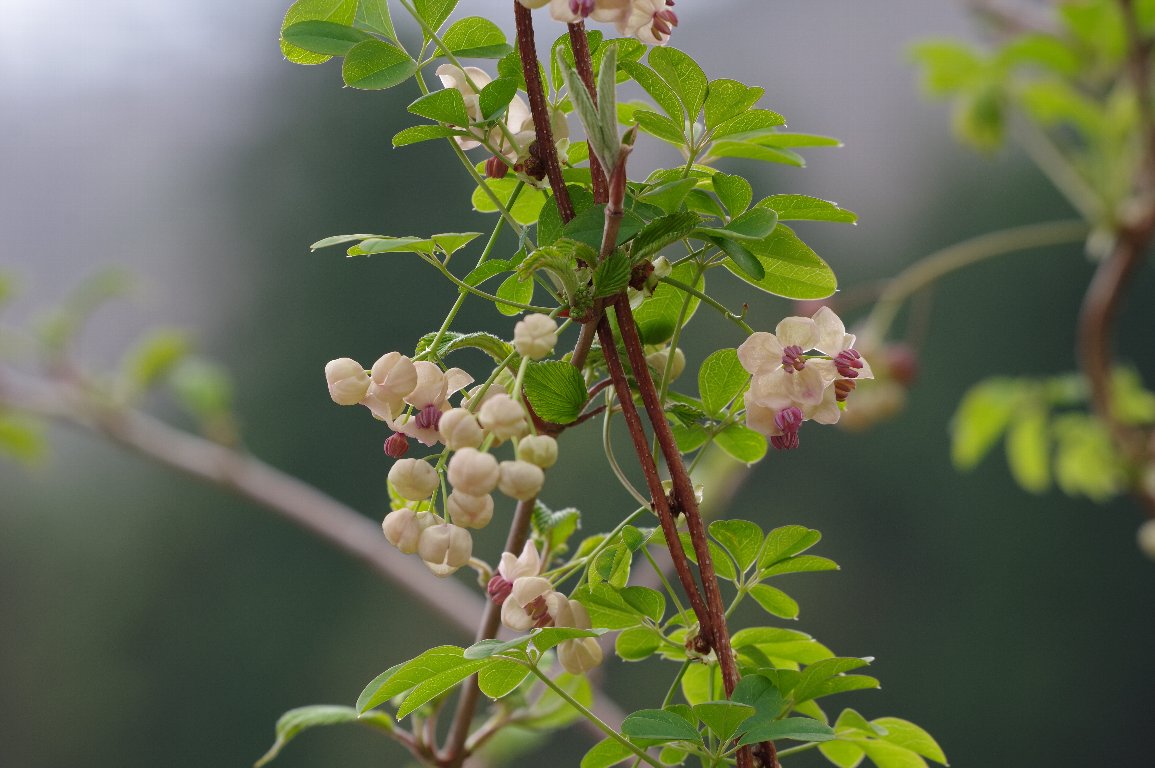 撮影雑記: 春先、淡い紫色の、アケビの花が、あちこちで咲いています。 案外、気付きにくい花で、車を止めて降りると、あ、ここにもあった、という感じ。 でも、この場所は、物凄いアケビの弦が絡んでいて、走っている車からでも、すぐにわかりました。 ![]() アケビの花は、絵になりますね。柔らかい雰囲気がいい。 ![]() 絡み合って、アーチのようになってました。 ![]() 最初の写真の花を、アングルを変えて撮ったもの。 ![]() 秋には、たくさんのアケビの実が生ったことでしょう。 |