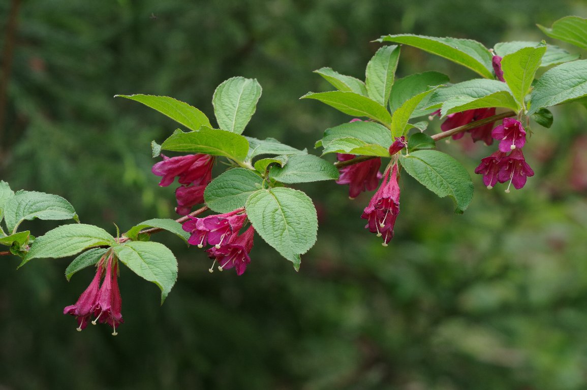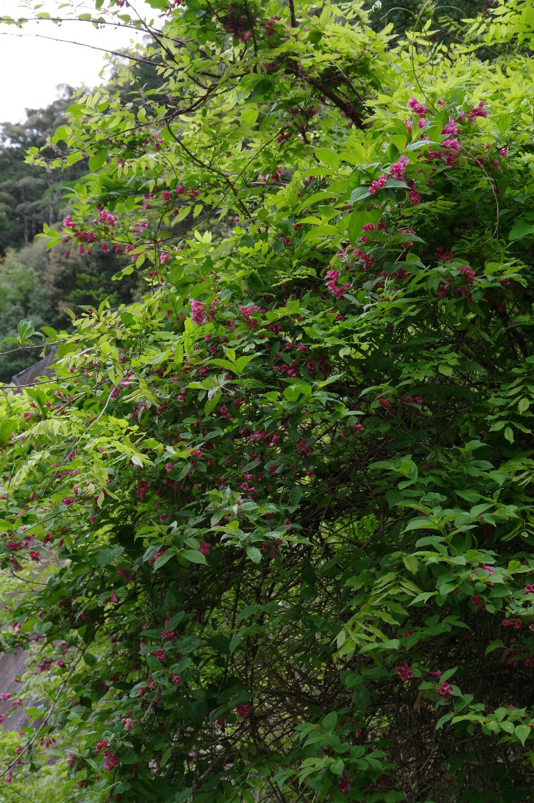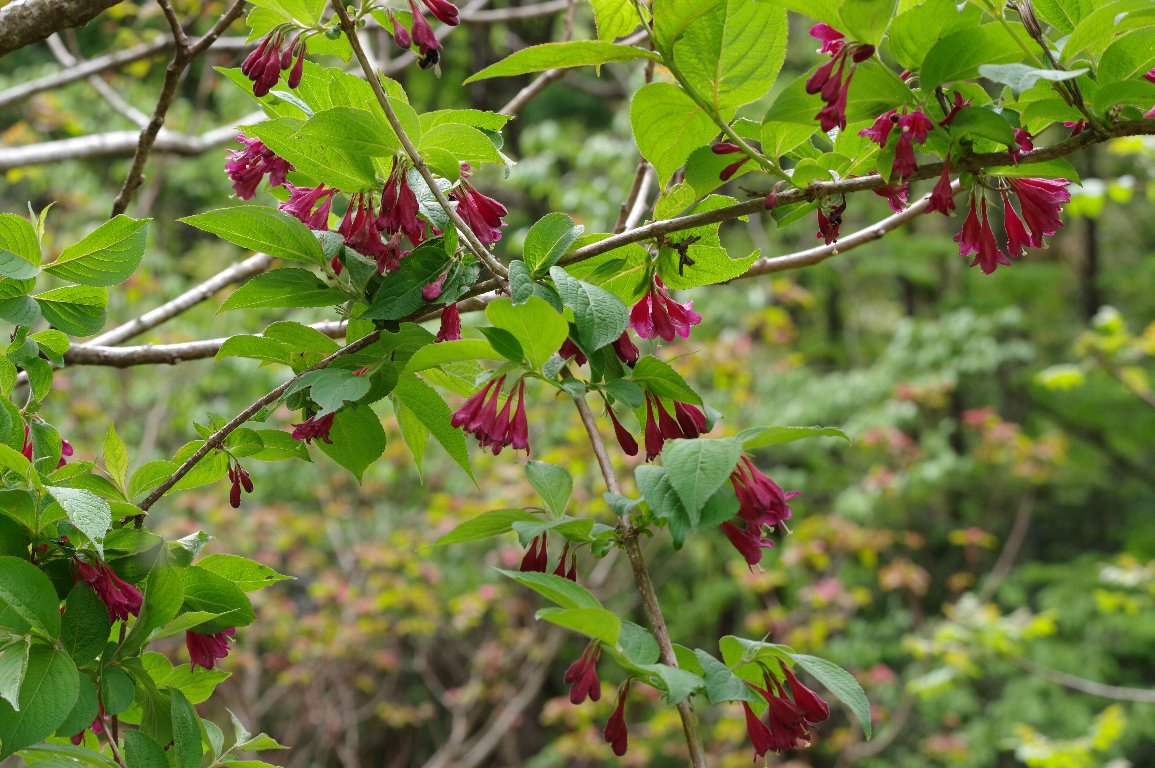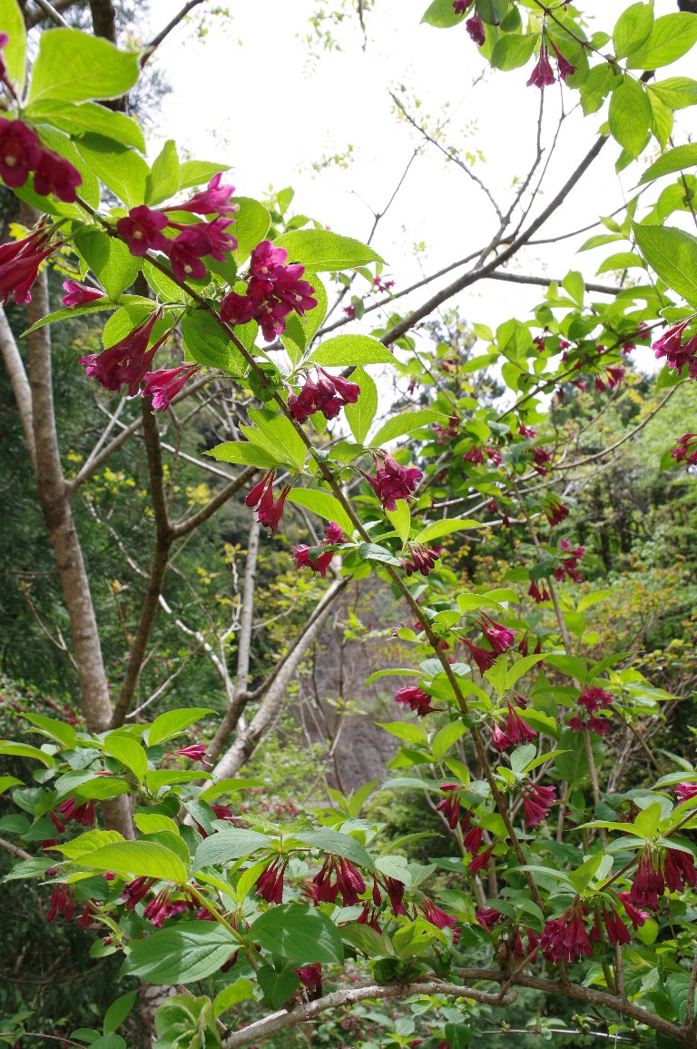 5月連休に帰省すると、濃い赤色も鮮やかなヤブウツギの花が、出迎えてくれる。 この年は、とりわけ、見事なヤブウツギが待っていた。 |