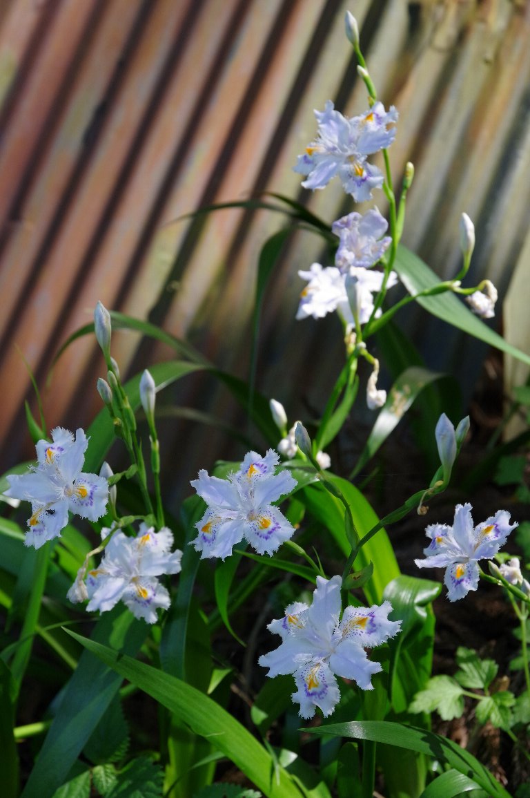 撮影雑記: この時期、林の下のあちこちで、シャガの群生が見られます。 ここは、それほどの群落ではなかったのですが、木々の間からの日差しを受けて、 きれいに咲いていました。 ![]() 放置されたトタン板の下から這い出して?咲いているシャガ。 ![]() 繊細な模様がきれいです。 ![]() |