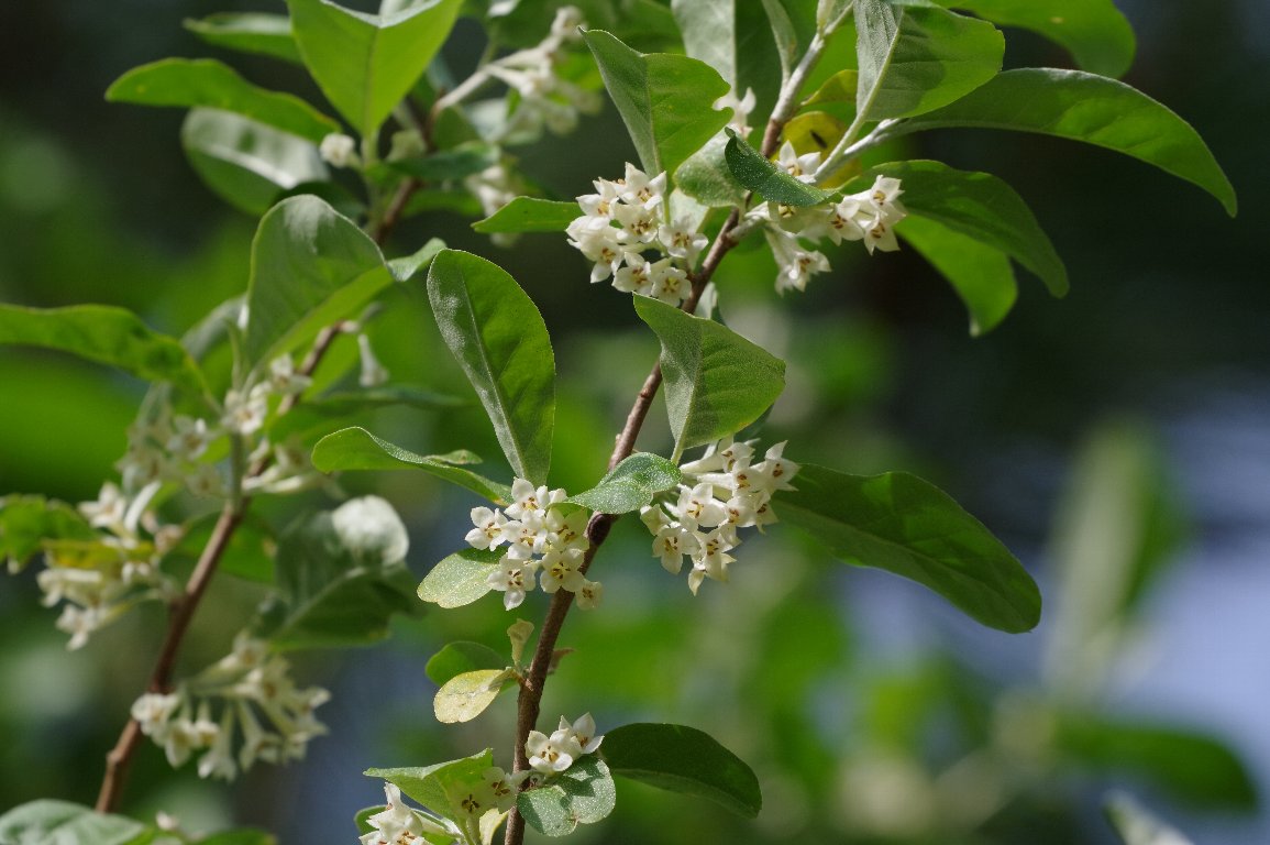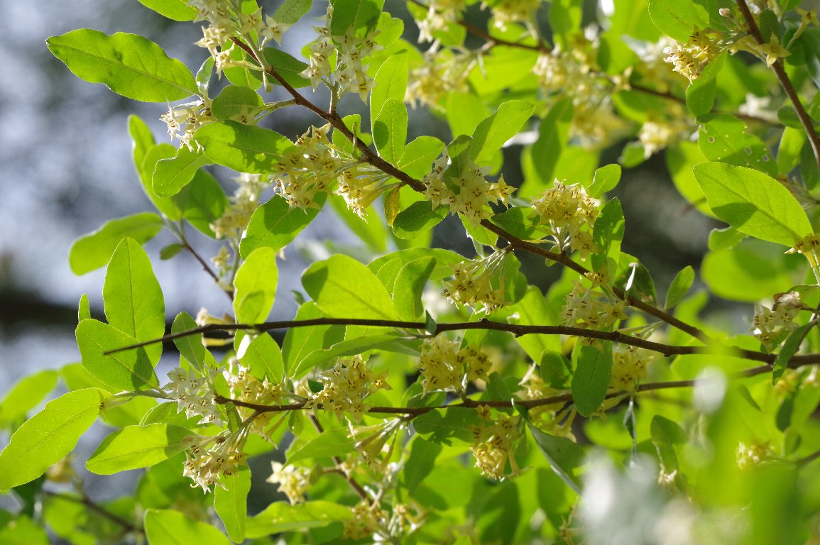12月の頭に実が生っていたアキグミ。 花が咲くのは初夏の頃。 訪れてみると、淡い黄色の小さな花を、幾つも咲かせていた。 |