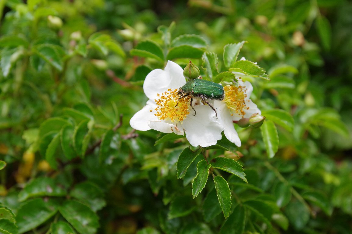撮影雑記: 初夏の白崎海岸には、テリハノイバラがたくさん咲いていました。 岩を覆うように、広がってに咲いています。 ![]() ハナムグリが訪れていました。 ![]() 這うように咲いていた花。 ノイバラより葉っぱが小ぶりです。 ![]() |