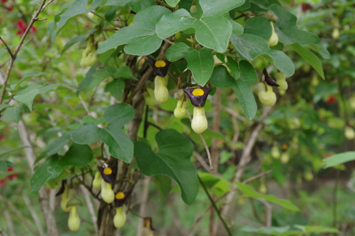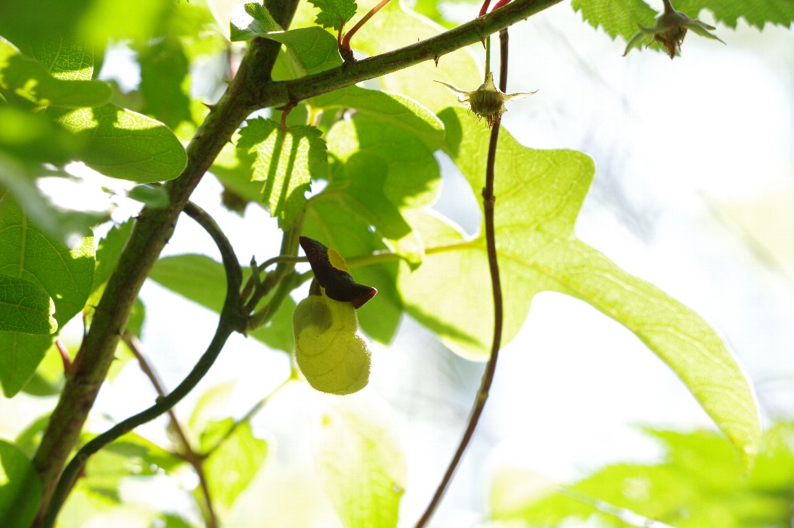 その名の通り、六甲山とその周辺にしか分布がない、と思っていたが、九州にもあるらしい。 何年かぶりに、鈴なりに咲いたアリマウマノスズクサに会えた。 そのひょうきんな姿は、見ているだけで、自然と笑顔になってくる。 |