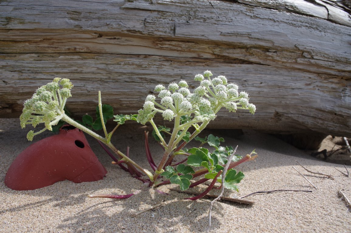 撮影雑記: 初夏の海岸には、いろんな花が咲きます。 その中にあって、地味なハマボウフウは、つい、撮りそびれてしまいがちですが、 ちゃんと撮ってみると、なかなかおもしろい花です。 トップの写真と同じ個体を、ローアングルで、ほぼ真横から撮ったものです。 かなり、雰囲気が変わりますね。 ![]() 流木の脇から咲くハマボウフウ。 ![]() 咲き終わりの花と、咲き始めの花。 ![]() ハマボウフウは、浜防風と書きます。 防風という漢方薬の植物に似て、浜に生息するからのようです。 ちなみに、防風は、風邪を防ぐ、という意味らしいです。 |
