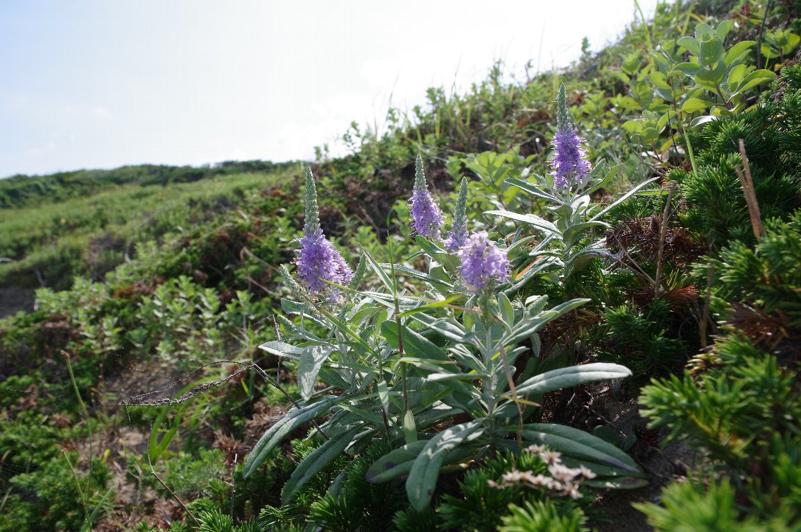 撮影雑記: トウテイランは、お盆の頃が見頃だったと思っていたのに、なんと、7月末で、もう、 穂の上の方まで咲き進んでいる花がたくさんありました。 ここ20年くらいで、年々、花のピークが早まっている気がします。 これも、温暖化の影響何でしょうか。 きれいに咲いている花を見つけました。 ちょうど、日差しが当たり始めたところです。 ![]() トウテイランを撮るとき、毎回、海をバックにしたカットを狙いますが、今回は、 割とうまく撮れました。 ![]() 背の低い草木しか育たない、海岸の環境。 そんな中で、咲いている姿は、たくましいですね。 ![]() ハイネズの間から顔を出したトウテイラン。 ![]() もう、何回も、トウテイランを撮りに来ていますが、心なしか、数が減ってるような 気がします。 センニンソウの白い花と、競うように咲いていた年もあったのですが、最近は、 センニンソウの姿を見なくなりました。 海岸の砂浜も、以前より、浸食されている感じです。 ちょっとずつ環境が変わるのは、自然の摂理ですが、少し心配です。 |