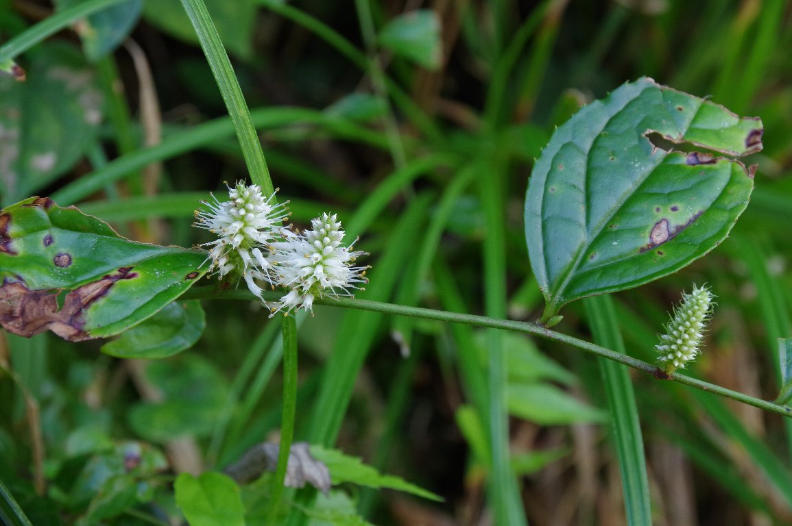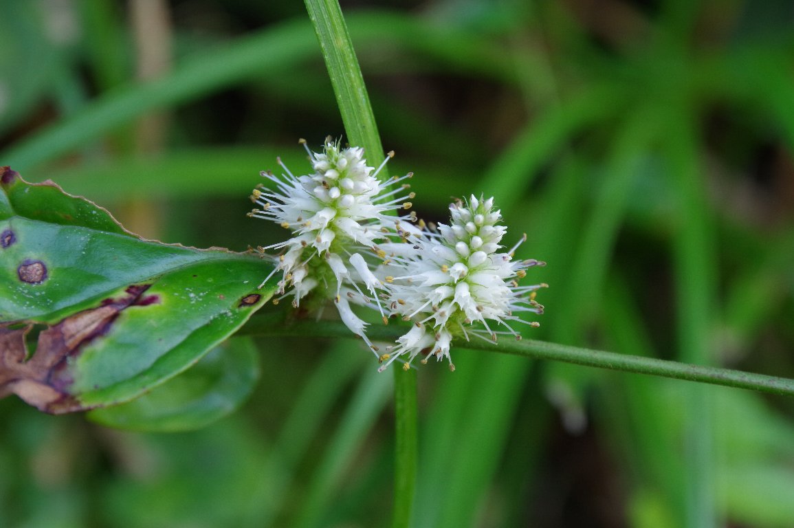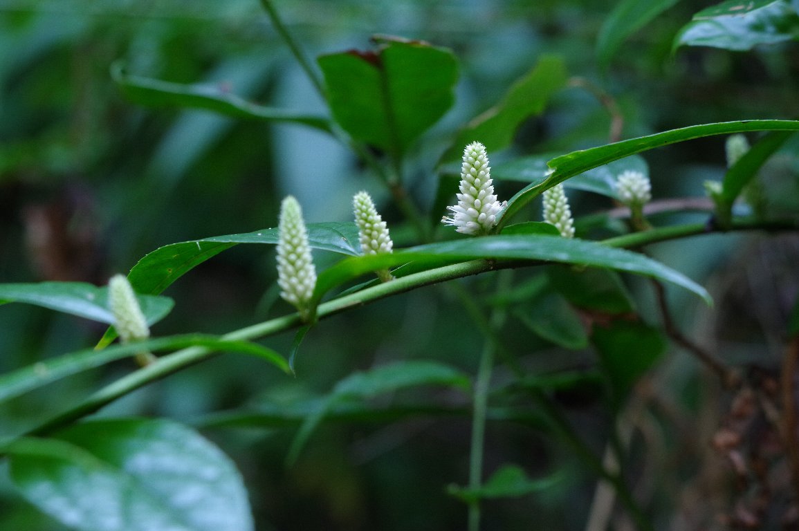 希少種のキノクニスズカケ、今年も、無事、咲いているだろうか? 自生地を訪れるたびに、ドキドキする。 よかった!穂になって枝に咲く白い美しい花は、健在だった。 |