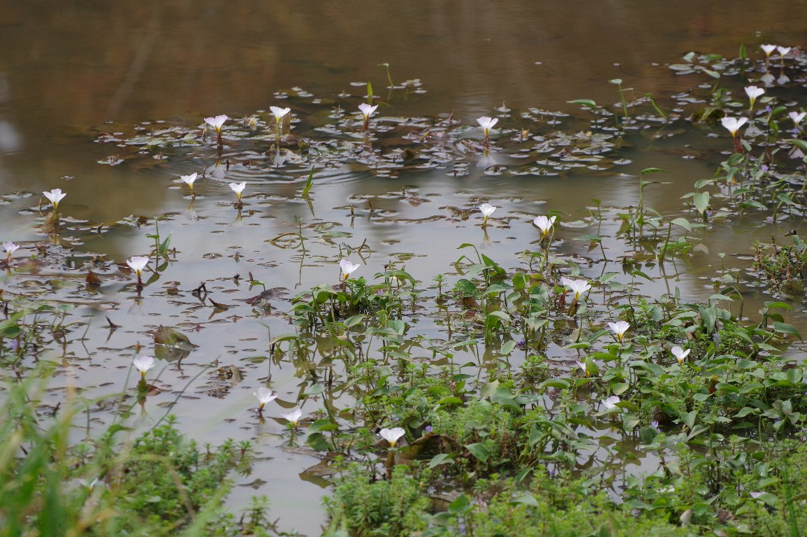 かつては田んぼだっただろうか、浅い池のところどころ、水面に淡いピンク色の美しい花が、