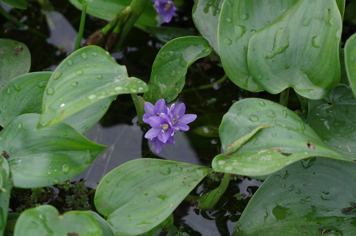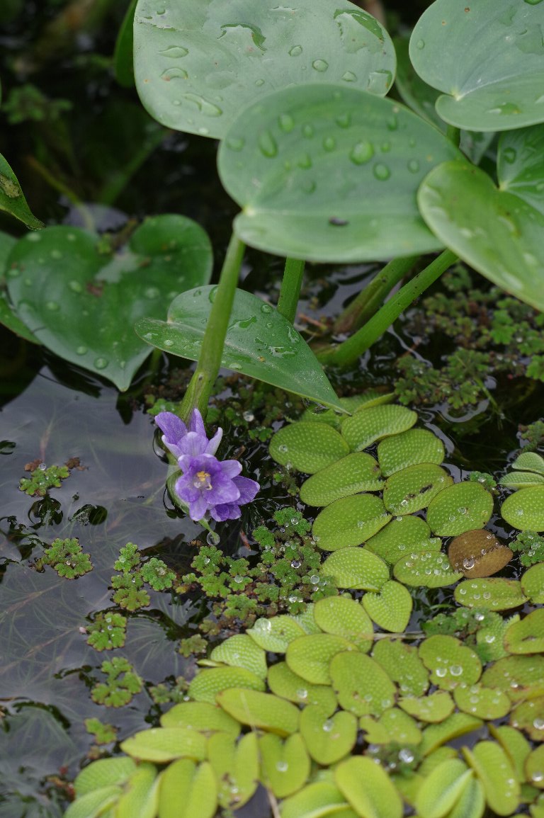 撮影雑記: ミズオオバコが咲いていた池には、コナギの紫色のかわいい花も、たくさん咲いていました。 コナギは、強い植物なので、隙あらば増えるぞ!って感じで、ちょっとした田んぼの脇でも、よく見かけます。 ![]() つややかな緑の葉っぱもきれいですね。 水面に浮いている手前の葉っぱは、サンショウモでしょうか。こちらは、シダ植物なので、花は咲きません。 ![]() 葉っぱの陰に隠れるように咲いているので、写真に撮るのは、けっこう骨が折れます。 ![]() 水面にちょこんと顔を出して咲いている花。 やっぱり、かわいい! ![]() |