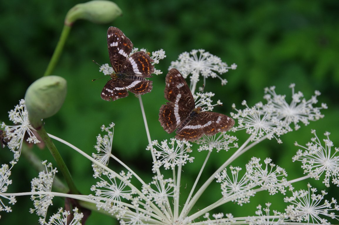 撮影雑記: 立派なシシウドが、咲いていました。 日は当たっていませんが、程よいコントラストです。 バックが暗いので、写真に撮ると、真っ黒な背景となって、花が浮き立って見えます。 ![]() ちょうちょが蜜を求めてやってきていました。 帰ってから調べたところ、タテハチョウの仲間のアサマイチモンジのようです。 ![]() 半球の花火のように広がる花を横から撮るか。 ![]() 上から撮るか。 ![]() 回り込んで、青空バックに撮ると、また、ちがった雰囲気に。 ![]() いくら撮っても、撮り飽きません。 ![]() |