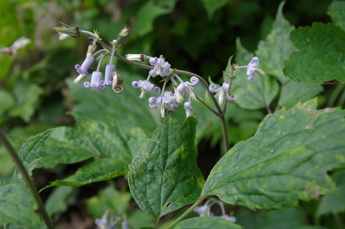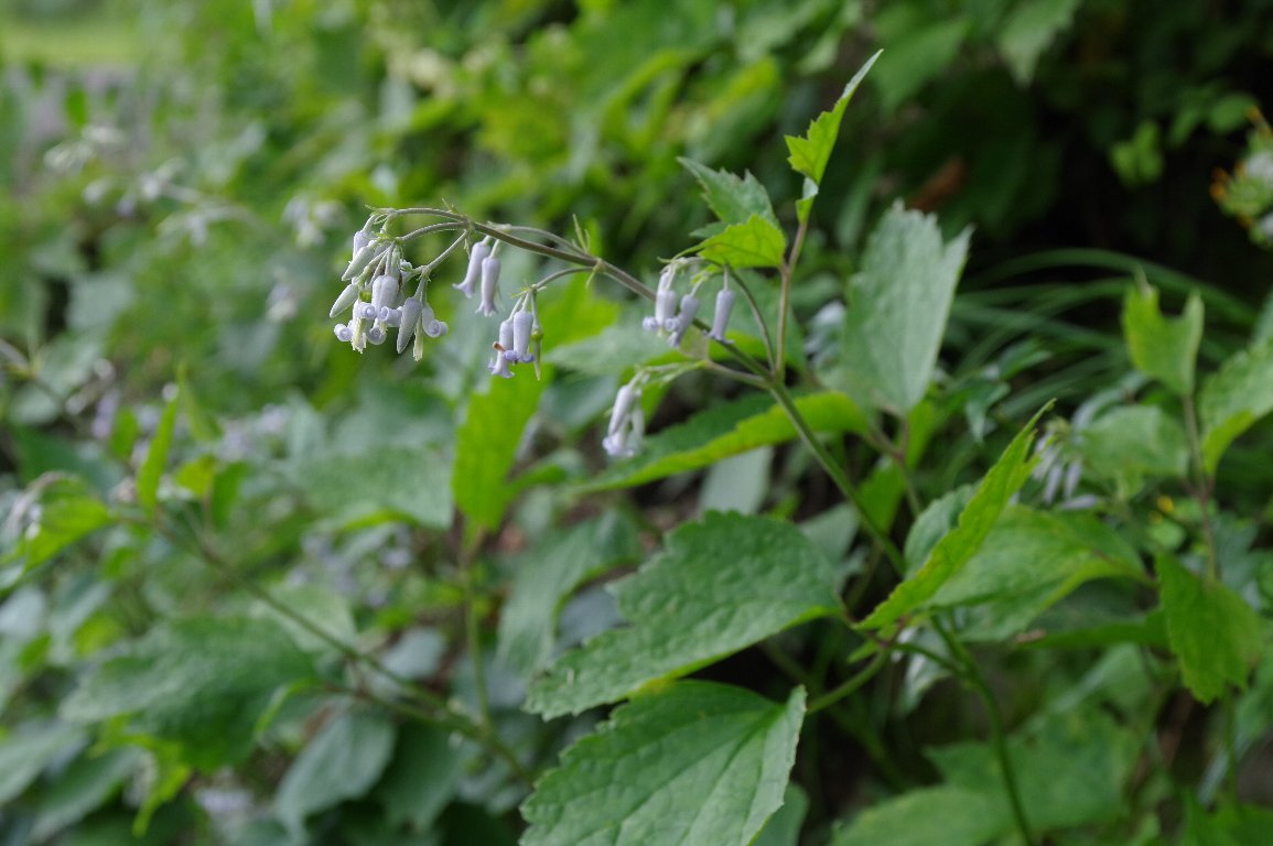 山道の道ばたの草むらから、くるくるっと巻いたかわいらしい花が覗いている。クサボタンの花だ。 数年前に見つけて、いっとき、消えてしまったかと思ったが、ちゃんと咲いていてくれて、よかった。 |