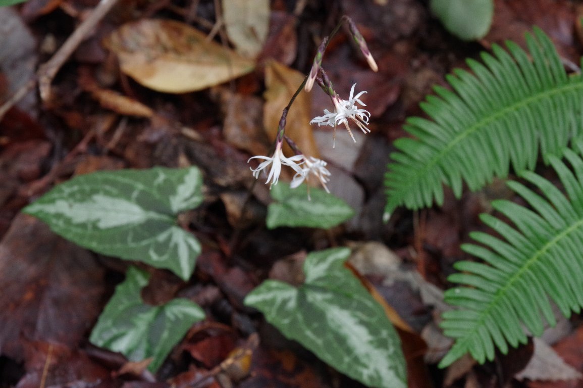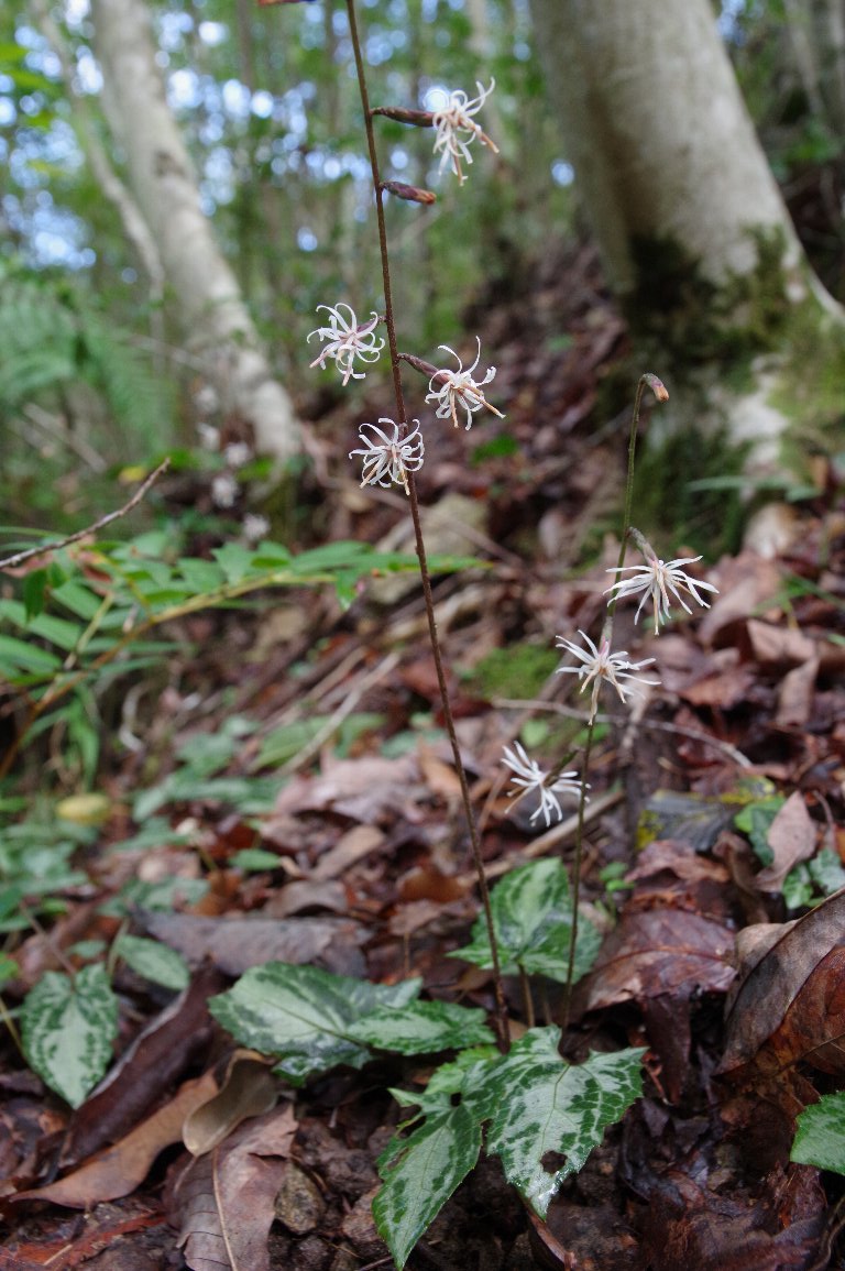 撮影雑記: 近所の里山公園の山中に、テイショウソウを見つけたのは、数年前。 以来、毎年のように花を撮りに行くのですが、花径が長く伸びた花なので、なかなか思うように撮れません。 花だけのアップならきれいに撮れますが、根元に展開する葉っぱといっしょに撮るのが難しいです。 縦アングルなら、まあ、何とか撮れます。 林の下で咲いている雰囲気も出てるかな。でも、花径の頭の方の花は、画角から切れてるんですよね。 ![]() 花のアップ。 丸く開いた花が並んで咲いているように見えますが、一輪に見える丸い花は、3つの扇型の花がくっついているのです (ハグマの仲間の特徴です)。 ![]() 小さな個体。 これくらい小さいと、さほど苦労せずに、花と葉っぱが一緒に撮れるんですけどね。 ![]() こちらは、去年撮った写真です。 大きくて、立派な株です。 でも、わかりますよね?写真に撮るのが難しい姿かたちです。 ![]() |