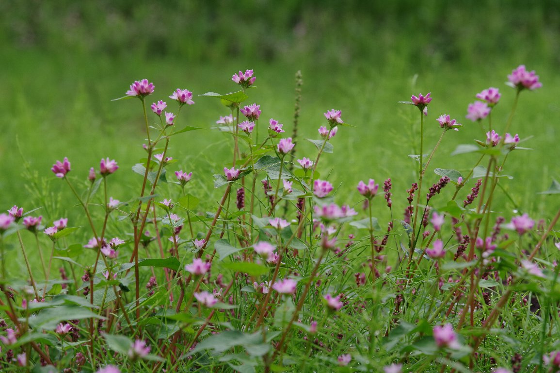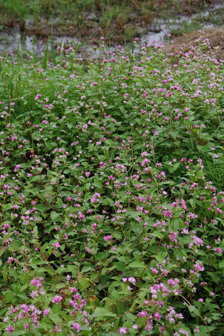 稲刈りも終わった田んぼのあぜ道が、ピンク色の花の絨毯に覆われている。 その、金平糖のような花は、ミゾソバの花。 こんな秋の風物詩が、割とどこにでも見られるのが、うれしい。 |