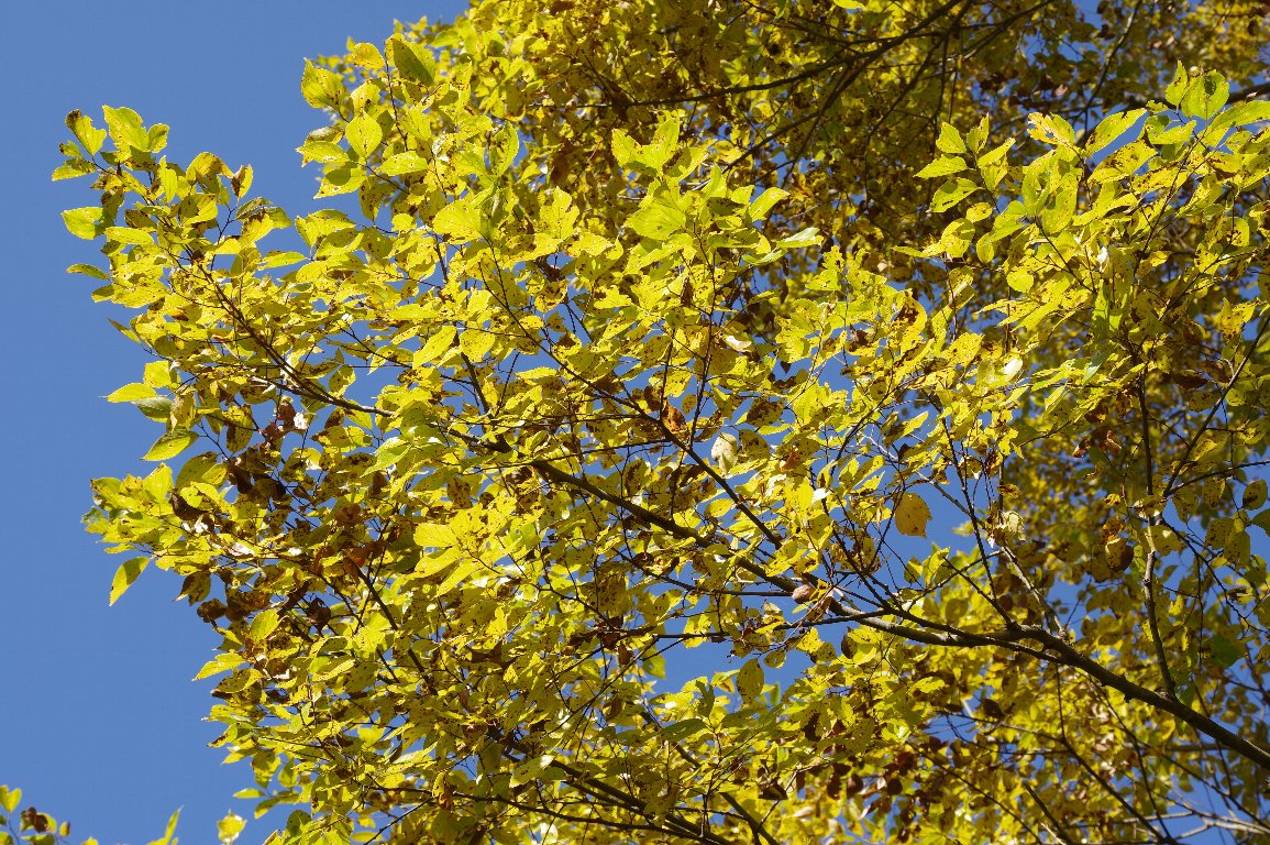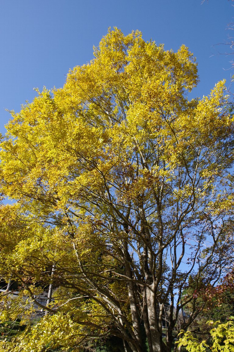 撮影雑記: 篠山方面に行くとき、よく通る県道沿いの田んぼの脇に、エノキの巨木があります。 この年、そのエノキが、とてもきれいに黄葉しました。 これが、ほぼ、全身です。圧倒される姿ですね。 ![]() 下から見上げると、この、迫力。 ![]() 黄色い葉っぱが、秋晴れに映えます。 ![]() 幹が何本にも分かれています。 ![]() 実は、ケヤキ、エノキ、ムクノキといったあたりの樹木の識別が、苦手です。 なかなか特徴がつかめません。 この木も、最初はケヤキかと思っていました。 でも、撮った写真をもとに調べると、ケヤキではなさそうです。 葉っぱの形からエノキと判断しましたが、エノキにしては、太い幹がしゅっと伸びているのが少し気になります。 また、花の咲くころに、しっかり調べ直さなくてはと思っています。 |