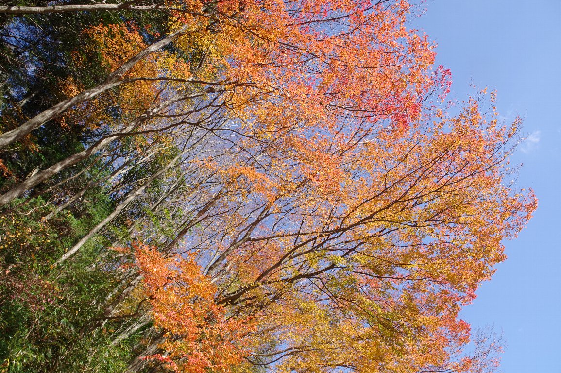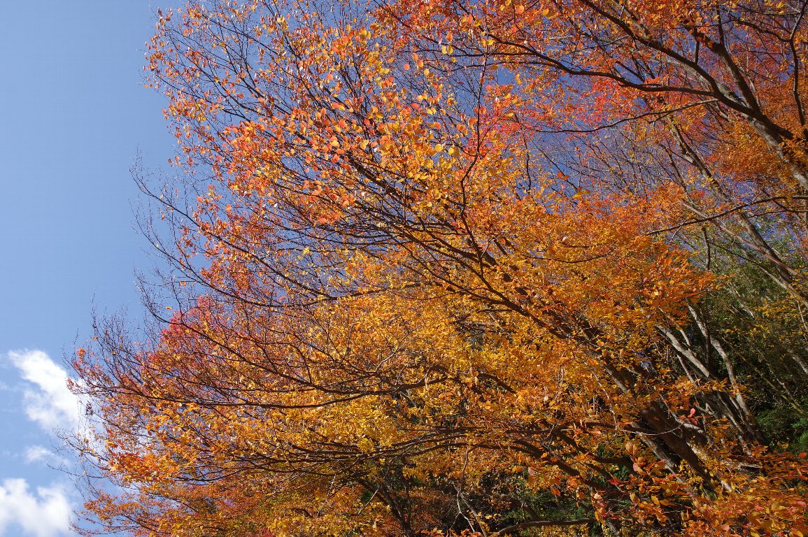 撮影雑記: よく通る道沿いの雑木林が、鮮やかな橙色に色づいていました。 ![]() 車を停めて、枝の下に入って見上げると、視野一面に、橙色の葉っぱが広がっていました。 ![]() さて、この木が、パッと見ただけでは、いったい何の木か、わかりません。 ひと枝持ち帰って、調べてみたところ、葉っぱの様子からして、ケヤキかと思いました。 ところが、春、花の時期に確認したところ、シデの仲間でした。 アカシデと思うのですが、イヌシデかもしれません。もう少し確認してみます。 そびえたつ立派な木木です。 ![]() よく見ると、けっこう、葉っぱが散っていました。 紅葉としては、すこしピークを過ぎているようです。 ![]() でも、あまり密に葉っぱがあるより、バックに青い空が見えるこれくらいの方が、きれいじゃないかなと思いました。 |
