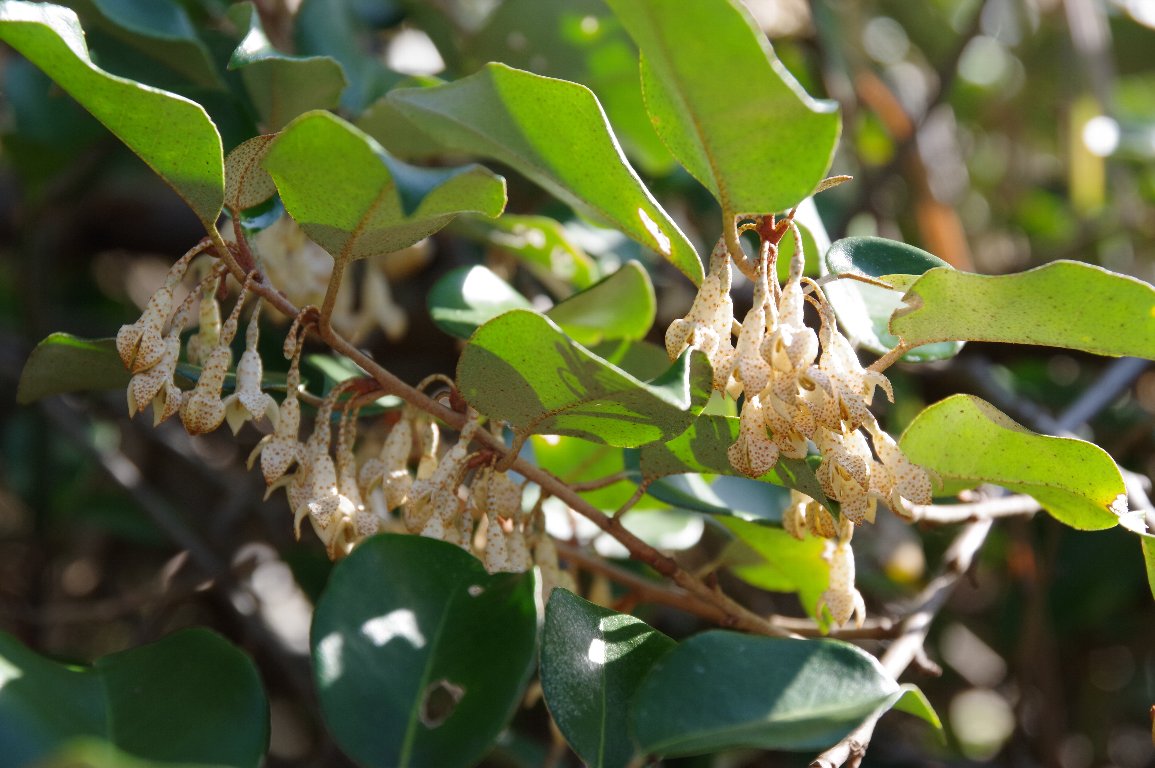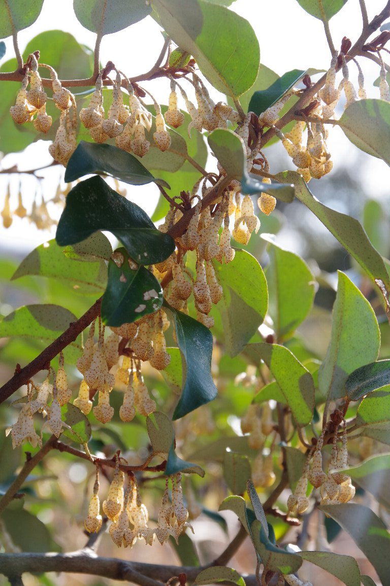 撮影雑記: グミの仲間は、何種類かありますが、特徴的な花や葉っぱ、実を見れば、すぐに、グミだとわかります。 これも、グミにはまちがいないのですが、12月に咲いているグミなんて、あったっけ? 帰って調べたら、ツルグミと言うんですね。 クリーム色の筒のような花が、いっぱい並んでいます。 ![]() 日に透かして、真横から見ると、ほの明るくて、ランプのようです。 ![]() ほんとうに、たくさんの花が付いていました。 ![]() ツルグミは、春に実が熟すとのこと。 忘れずに、実を見に行かねば。 花がいっぱいついていたツルグミですが、聞くところによると、なかなか花を付けないそうです。 初見で、こんなに花付きの良いツルグミが見れたのは、ラッキーでした。 |