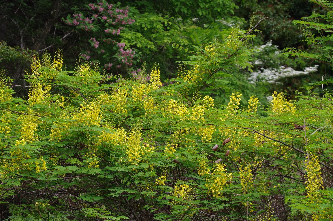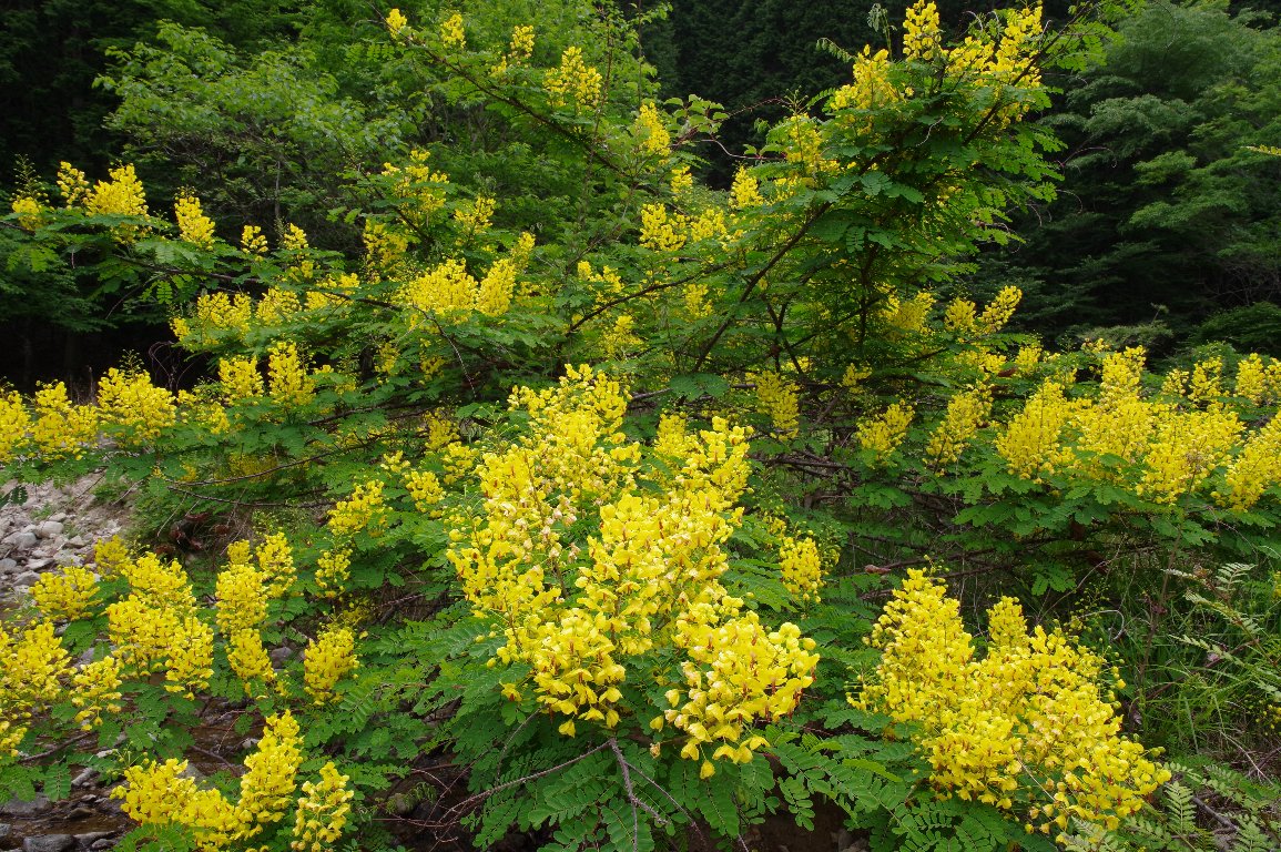 初夏の空の下では、ジャケツイバラの黄色い花が映える。 ここ数年、見かける頻度が増えた気がする。山の荒れ地が増えたのか? 山に咲く花では、飛び切り豪華。多くの人に知ってもらいたいし、愛でてもらいたい。 |