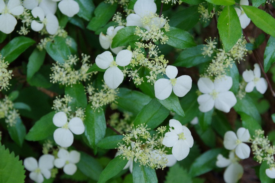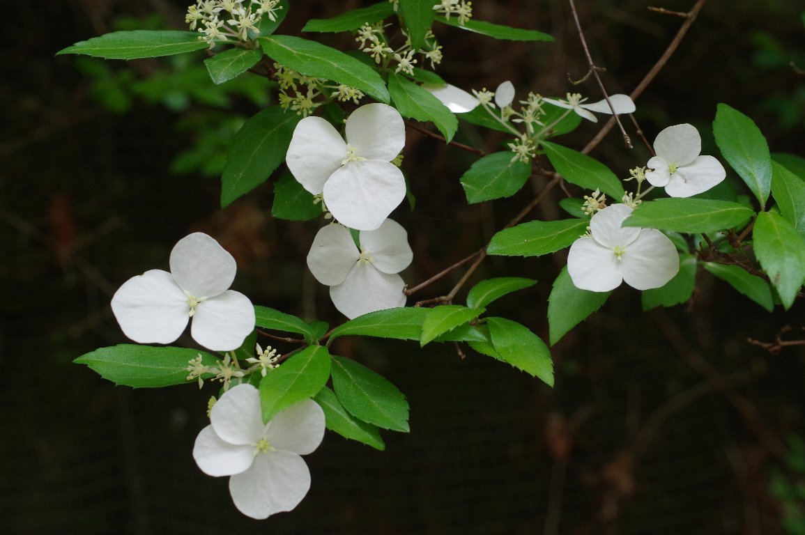 撮影雑記: ツルアジサイを撮っていた場所には、コガクウツギも咲いていました。 林の下の小低木で、ちょっと地味な存在です。 ![]() アジサイの仲間なので、細かいのが花、それに3枚または4枚の白い装飾花が付いています。 ![]() 小低木というやつで、林の下草のように、広がっています。 ![]() ここから2枚は、別の年、兵庫県三田市で撮ったものです。 装飾花がちょっと大きめです。 ![]() 少しアップの写真。美しい花と思います。 |