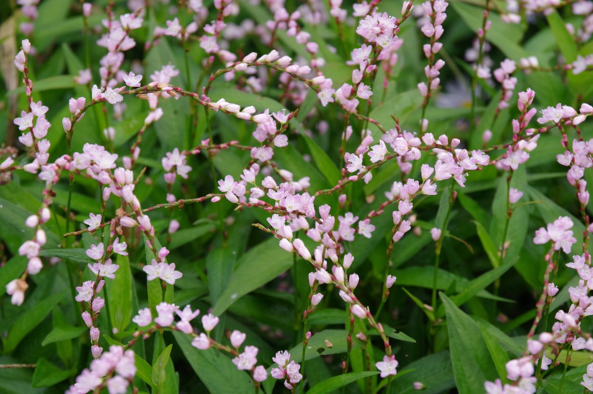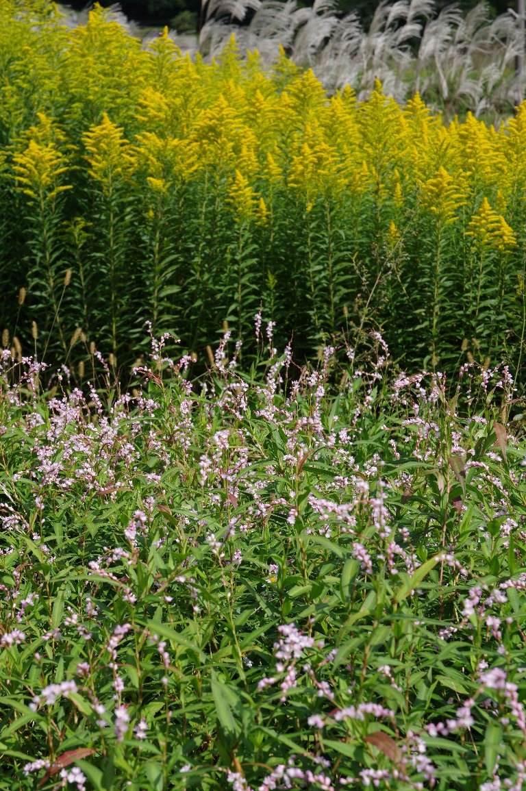 撮影雑記: 三田の奥、お茶の産地の母子地区から、狭い山道を下って、篠山に入るルートは、いつも、 いろんな花が見られる、お気に入りのコースです。 この日も、山道を下り、里に入って行ったとき、一枚の休耕田に、目が釘付けになりました。 少し湿ったその田んぼには、とてもたくさんの種類の秋の花々が、咲き誇っていたのです。 ここで取り上げたサクラタデ、イヌタデ、オオイヌタデの他に、ヨメナ、ミゾソバ、ヤマハッカ、 ヒヨドリバナ、そしてセイタカアワダチソウにススキ。 なかでも、サクラタデの大群落には、驚きました。これほどたくさん咲いているサクラタデの姿は、 これまで、見たことがありませんでした。 ![]() 手前から、サクラタデ、セイタカアワダチソウ、ススキの三重奏です。 ![]() こんなに密集して、しかも、広い範囲に群生しているサクラタデは、初めて見ました。 あっちもこっちもサクラタデなので、どう撮ったらいいのか、返って、迷ってしまいます。 ![]() 横から見たサクラタデ。 ![]() ほのかな桜色の小さな花、もちろん、それが、桜蓼の名の由来です。 この後のタデの花2種、イヌタデ、オオイヌタデも、ここの休耕田のお花畑で撮った写真です。 |