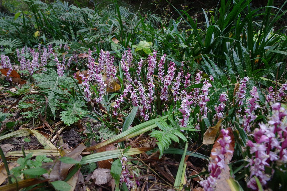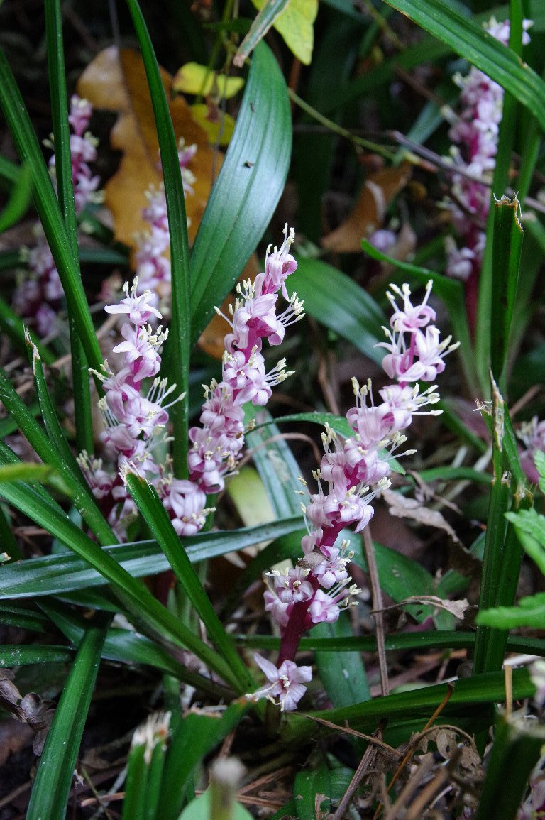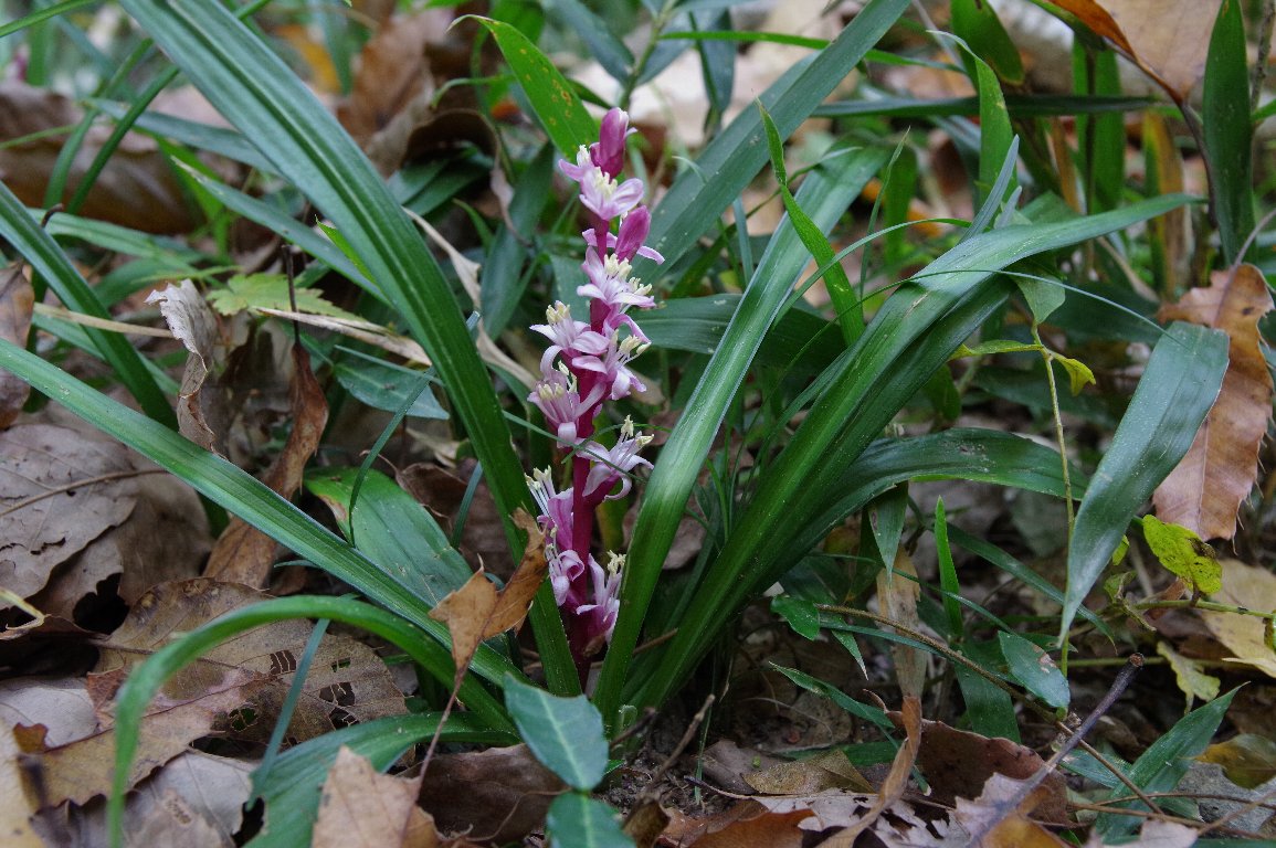 撮影雑記: キチジョウソウ(吉祥草)は、その字のごとく、縁起の良い花とされています。 晩秋に咲く花ですが、ちゃんと、山に咲いている姿は、まだ見たことがありませんでした。 調べると、大阪府内の園地に自生があるようです。 見られるかどうかわかりませんが、訪れてみることにしました。 ![]() 沢筋の、散策道を30分ほど歩いて登ると、道端にかわいい姿で咲いていました! ![]() さらに少し進むと、あれまあ、凄い群生です。 しかも、花がよく見えるように草刈りされているようです。 園地なので、保護、管理されているのでしょうね。 ![]() 赤い茎に、薄いピンクの花が咲くので、紅白の色模様になります。 なので、縁起のいい花、なんでしょうかね。 |