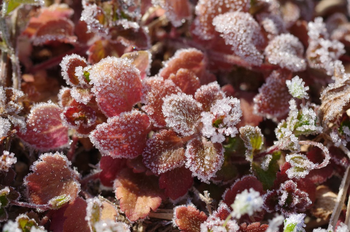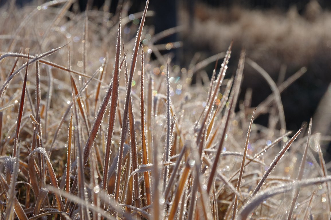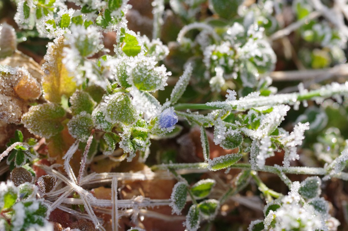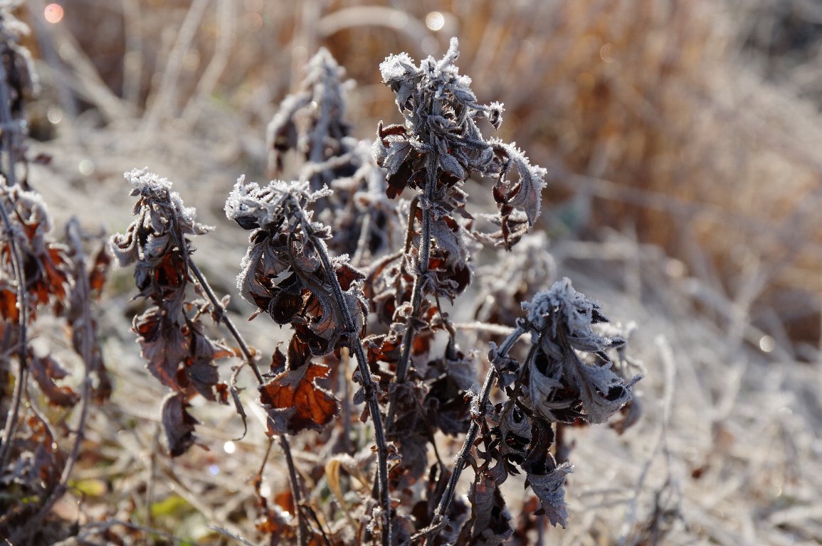 12月と1月に霜景色を撮ったあぜ道で、みたび、霜の撮影。植物たちの様子は、また変わっていた。 オニノゲシは、赤味を帯びつつロゼット葉を広げ、春の準備をしている。 他にも、ほとんど枯れたもの、既に花を付けていたもの、様々だ。 |