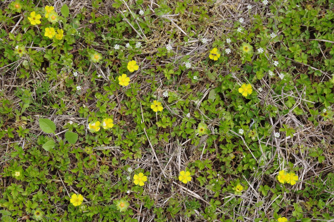 撮影雑記: 時々通るルートに、小さな、いろんな花が咲いている休耕田を見つけました。 白い花はアリアケスミレ、ノミノフスマ、オランダミミナグサ、黄色い花はヘビイチゴ。 田んぼを覆うように咲いていました。 ![]() そのうちの、ヘビイチゴです。 順番に咲いているのでしょう、ちょうど咲いている花、まだつぼみの花、もう散ってしまった花が、 ランダムに散らばって咲いています。 ![]() ひとつの画面に、なるべくたくさんの花が入る場所を探しては、撮りました。 1か月もすれば、赤い実がたくさん生っているはず。 そう思って、後日、寄ってみたのですが、様子が変わっていて、実の写真は撮れませんでした (と思うのですが、寄らなかったのかも。記憶が曖昧です)。 |