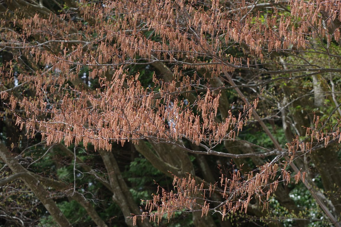 撮影雑記: 2022年の小雪の花として、紅葉したアカシデを、ケヤキと大まちがいをして紹介してしまいました。 親切な友人が、ちがいますよと教えてくれて、大慌てで修正しました。 春、花の時期に来れば、もう、まちがいようがありません。 どう見ても、シデの仲間です。 ただ、アカシデかイヌシデか迷うところでありますが、花や実の特徴を詳細に検討した結果、アカシデと 判断しました。 ![]() まだ葉が展開する前の枝に、とてもたくさんの花が咲いています。 風媒花なので、数がものを言うのでしょうね。 ![]() ぶらぶら幾つも垂れ下がっているのは雌花で、雌花の房の先に、緑の苞に包まれてちょこんと出ているのが雄花です。 ![]() それにしても、たくさんの花です。 穏やかな赤い色は、何と言えばいいのでしょう。赤褐色?いや、これは、野暮な言い方です。 日本古来の赤色を少し調べましたが、紅樺色(べにかばいろ)が近いかなあと思います。 (参考:https://www.colordic.org/colorsample/2277) ![]() ここは、数本のアカシデが群生しています。 山の一角が、紅樺色のふわふわに覆われていました。 大まちがいをしてしまったアカシデ。 その確認のため、2023年は、何度か様子を見に行きました。 なので、あと2回、新緑の頃と実の頃のアカシデも紹介する予定です。 |