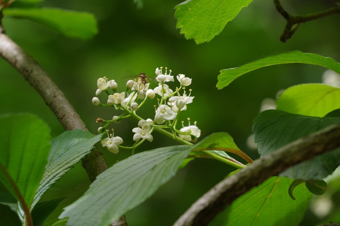 撮影雑記: 我ながら、ずいぶんと、いろんな草木の花を見てきたものだと思います。 普通の山に咲いている花はほとんど見つくしたかと思ったりもしましたが、とんでもないですね。 まだまだ、見たことのない花があります。 この、ゴマギも、この時に初めて見た花でした。 葉っぱがゴマのような香りがするので、胡麻木だそうです。 ![]() 丸みのある、広い葉っぱです。 そこそこ、大きな木でした。 ![]() ヒラタアブの仲間が、蜜を吸いにやってきていました。 |