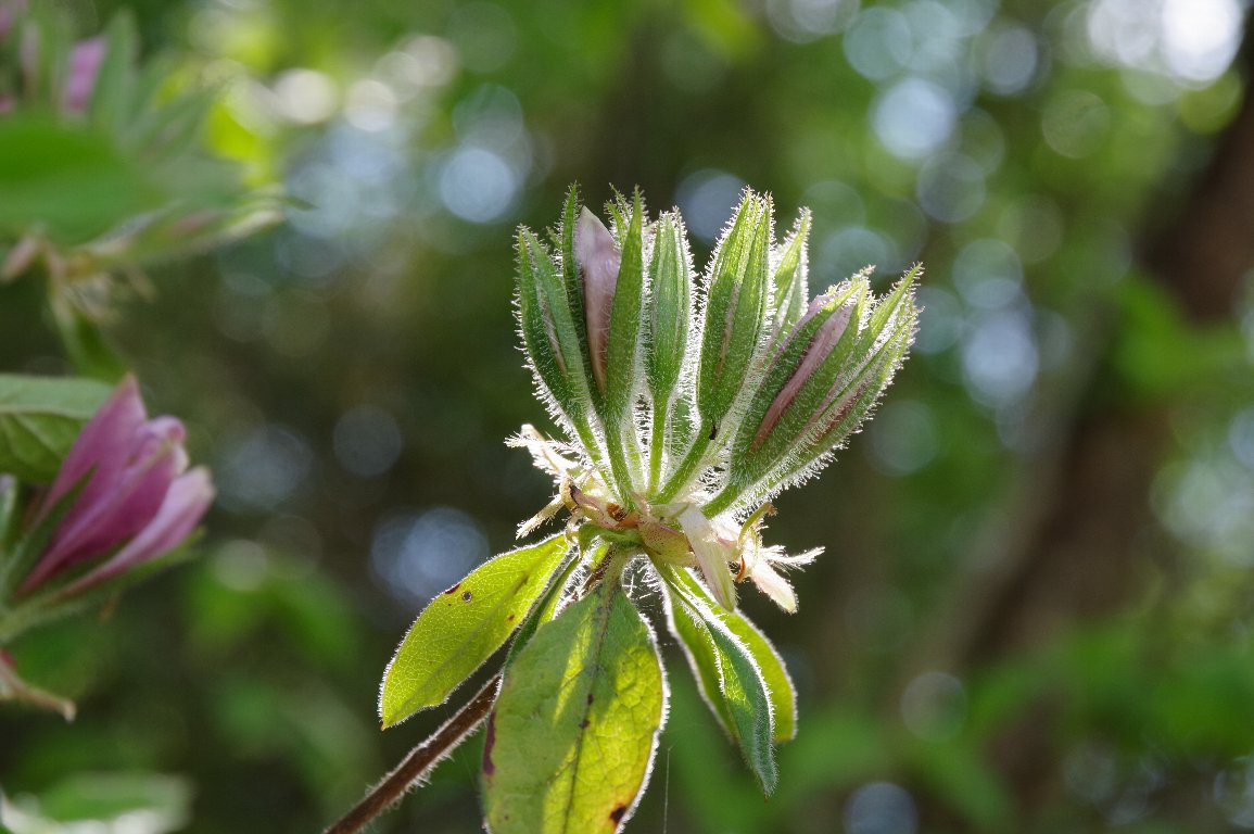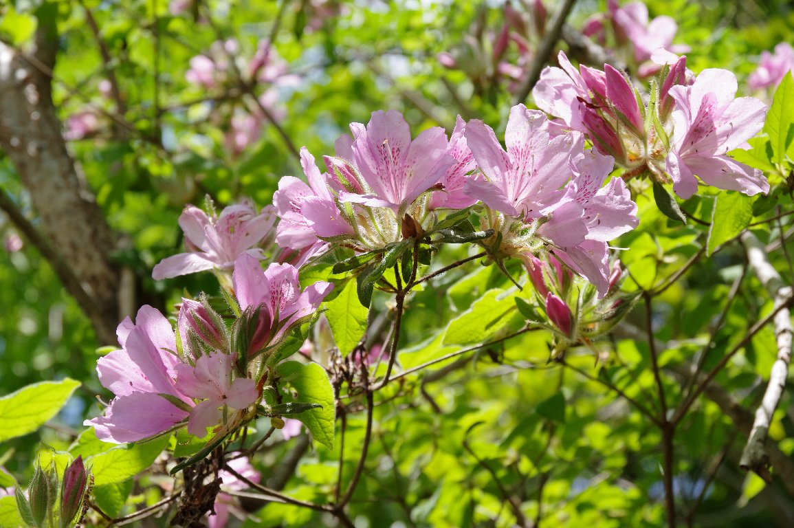 撮影雑記: 春から初夏にかけて、山に咲くツツジの仲間はいろいろありますが、モチツツジはがく片がネバネバするので、 すぐにそれとわかります。 餅つつじの名は、トリモチのように、ネバネバするところから付けられたようです。 ![]() まだつぼみのモチツツジがありました。 空に向かって、さあ、咲くぞ! ![]() 木々の間の、少し淡い色合いのモチツツジ。 ![]() 山肌、道ばたに、たくさん咲いていました。 この年(2022年)は、モチツツジの当たり年だったようです。 |