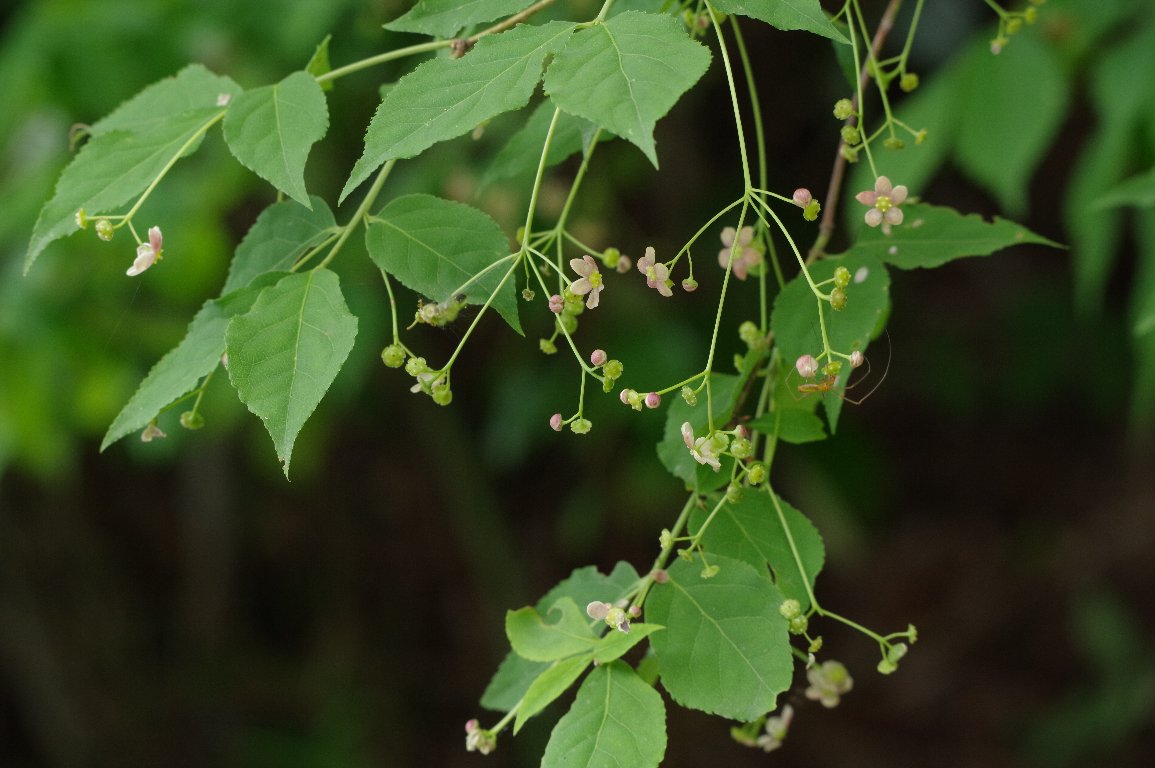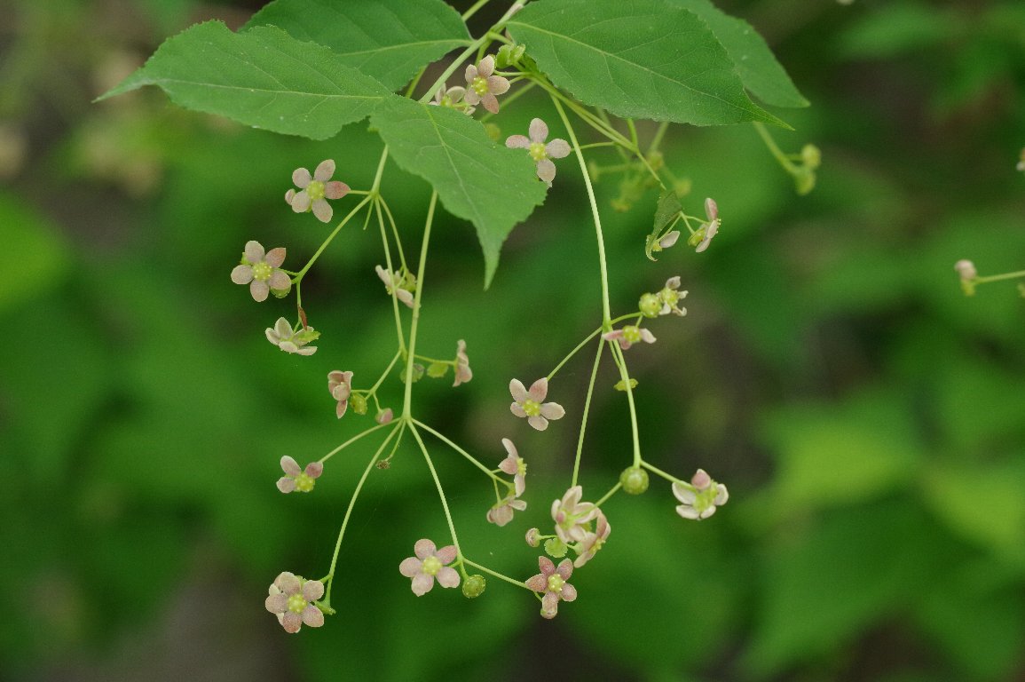 撮影雑記: 車で、何度も近場をまわっていると、ここの斜面はおもしろい草木がある、ここの土手はいろいろ花が咲く、 というポイントが幾つかできてきます。 そんなポイントのひとつである、川沿いの道の斜面で、見慣れない細かい花を見つけました。 マユミの花だ、そう思って写真に撮っておいたのですが、後から調べたら、ツリバナの花でした。 どちらも、秋に鮮やかな実を付けるニシキギ科の仲間ですが、マユミの花は4弁、ツリバナの花は5弁です。 明らかにちがうんですが、雰囲気は似てるんですよね。 ![]() 少しアップ。なかなか、かわいい花です。 ![]() 花がぶら下がって咲くので、吊り花。確かに、その通りの花ですね。 ツリバナは、こんな実が生ります。花より実の方が目立ちますね。 → <2020年9月>(秋分) さて、ツリバナが咲いていた川沿いの斜面には、他に、ムラサキシキブやオハラメアザミなどがあります。 2023年の初夏の頃、オハラメアザミの立派な株が育っていて、秋に咲くのを楽しみにしていたのですが…。 残念!秋が来る前に、大幅に草木が刈られてしまっていました。 道ばたですから、時々、刈りこまないと、道に覆いかぶさってしまうので、しかたないです。 また、数年したら、いろいろ、伸びてきて、花を咲かせてくれることでしょう。 |