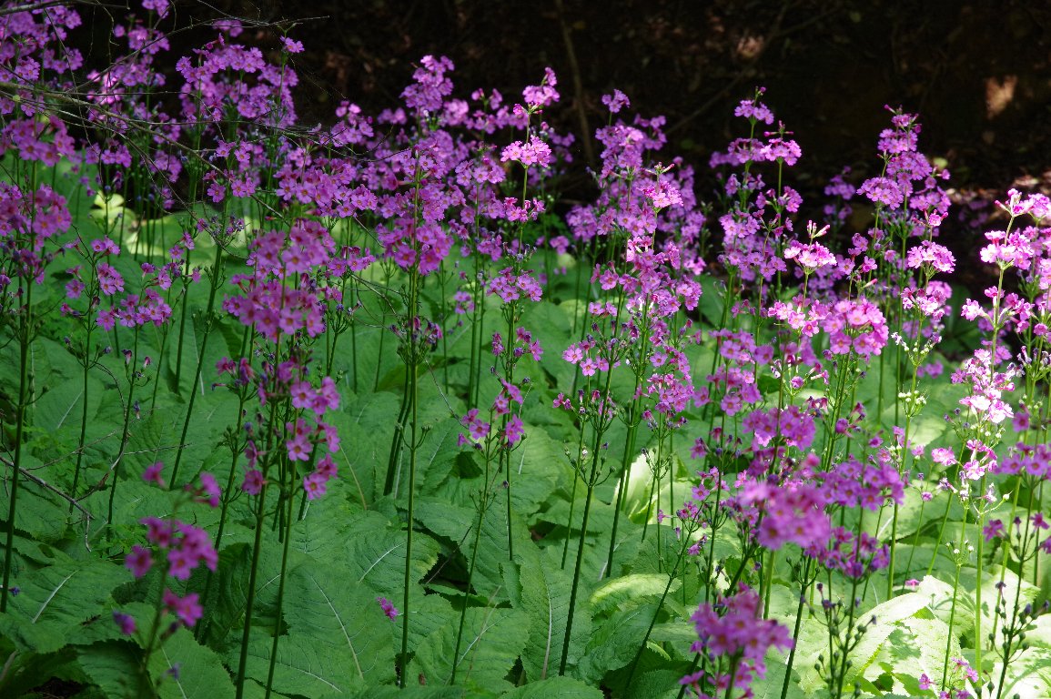 撮影雑記: 自宅からあまり遠くない丹波篠山市内の山中に、クリンソウ自生地があることを知ったのは、10年以上は 前だったと思います。 しかし、そこへ行くには、1時間ほど山を登らなければいけないので、長いこと、訪れずにいました。 しかし、せっかく近くにあるのだから、いちど行ってみなくてはと、2022年に、やっと重い腰を上げました。 谷筋の道を登り切って、少し下ると、ピンクの塊が目に飛び込んできました。 ![]() クリンソウの群落です。 いやはや、凄い密度で咲いています。 ![]() 陽射しが強く、コントラストが強すぎて、日向と日陰をいっぺんに画面に収めることができません。 この写真は、日が当たってる花を、ひとつ上の写真は日陰の部分の花をメインに撮っています。 ![]() アップの写真。 このくらいにアップにすると、コントラストの強さが、花を際立てますね。 ![]() 群落を見上げてみました。 陽射しが強くて、写真に撮るには骨が折れましたが、凄い密度の群落を見たので、まずまず良かったと思い、 帰途につきました。 帰ってから、あらためて、ネットの情報を見て見ると、んんん? なんか、きょう見た群落と様子がちがう。もっと、広い範囲に咲いているようです。 どうやら、群生地は、もう少し先にあったようで、手前の小群落で満足してしまってたようです。 さて、ネットでクリンソウを検索すると、自生地、群生地の紹介サイトが、最近、増えてきています。 各地で、自然が戻ってきているのでしょうか? いえ、むしろ、その逆です。シカが食べないクリンソウばかりが増えているのです。 喜べない状況です。 |