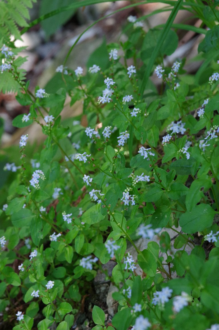 撮影雑記: 初夏のころ、渓流のそばに水色の花が咲いているのは、目にも爽やかですね。 初めて見たのは、もう何年も前ですが、その時にそう思いました。 ![]() 群落を作って咲いていました。 小さな花ですが、これだけ揃って咲いていると、華やかです。 ![]() キュウリグサと同じように、くるっと花が巻いていて、ほどけながら咲く感じです。 |