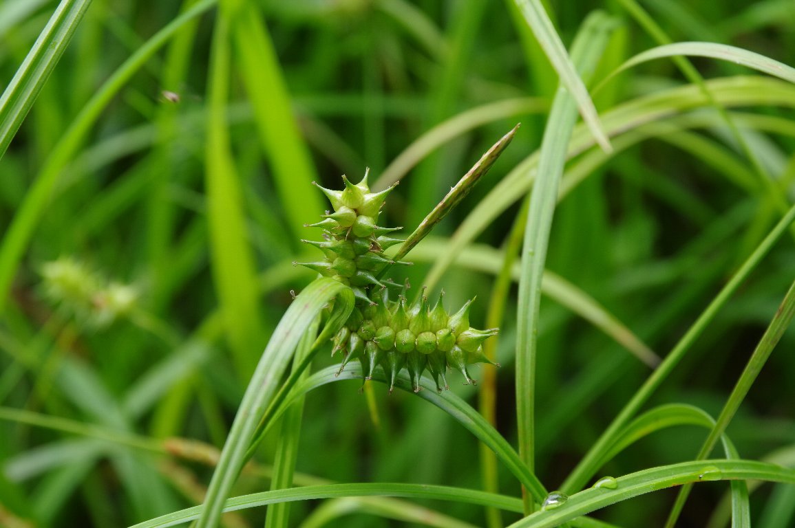 撮影雑記: この年(2023年)、近所に、休耕田やその周りの山を巡る散策路があるのを知りました。 季節が進むごとに、今時分は何があるだろうと、何度か出かけました。 6月の下旬に行ってみると、先月にキショウブが咲いていた休耕田は、ちょっといかつい姿の草が、 びっしりと生えていました。 ![]() 帰ってから調べると、どうやら、オニスゲという、カヤツリグサ科の仲間のようです。 ![]() すでに花は終わって、実になっていました。 それにしても、トゲトゲした、おもしろい形の実です。 ![]() よく見ると、ひとつの茎に2、3個の実がつき、その真ん中から、シュッと穂が伸びています。 実になっている部分が雌花で、シュッと伸びているのは雄花らしいです。 地味ですが、こんな草も、おもしろいですね。 |
