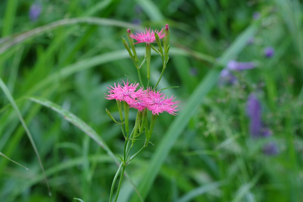 オグラセンノウに会いに、鯉が窪湿原を訪れるのは、今回で3回目。 よかった、今年も、きれいに咲いていた。 まだ、朝露が残る朝の湿原に、えんじ色の花が揺れていた。 |