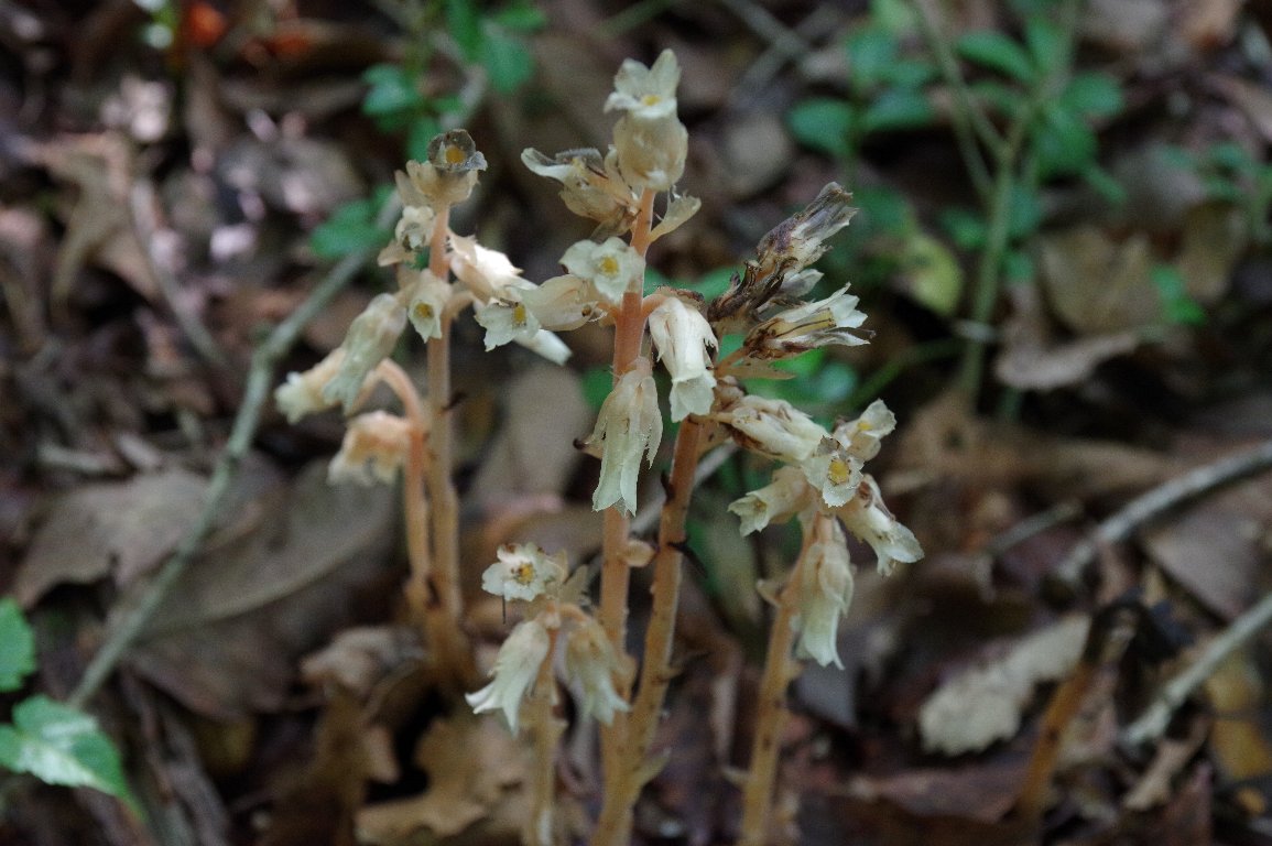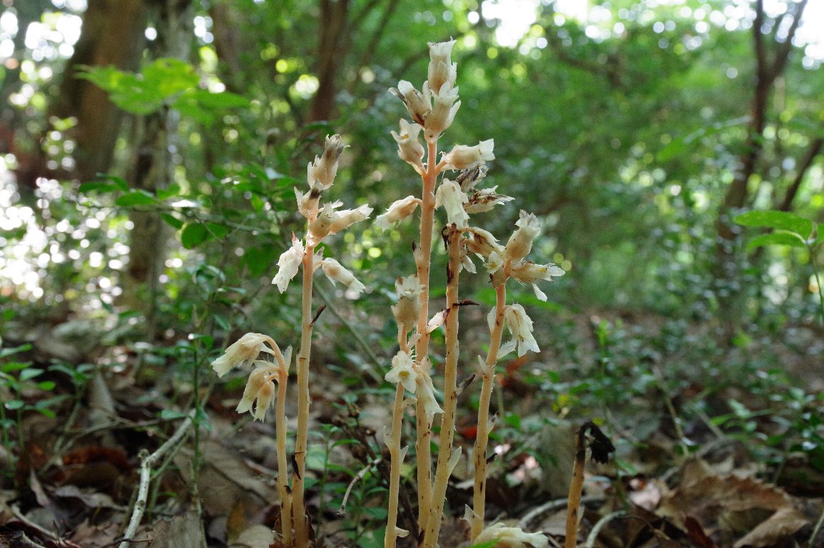 久しぶりに、咲いているシャクジョウソウに会うことができた。 菌類から栄養をもらい、光合成を行わない、全身が黄褐色の不思議な植物。 でも、おちょぼ口のような花は、かわいらしい。 |