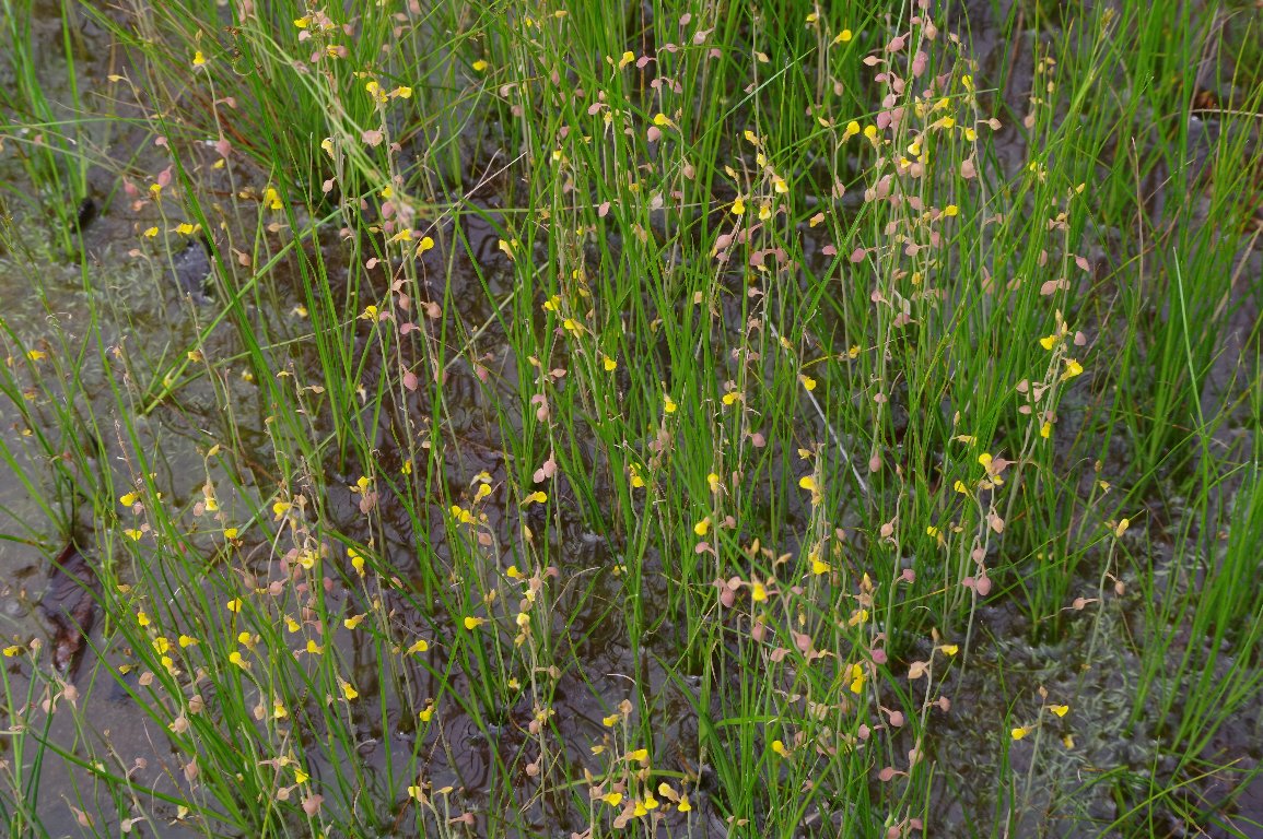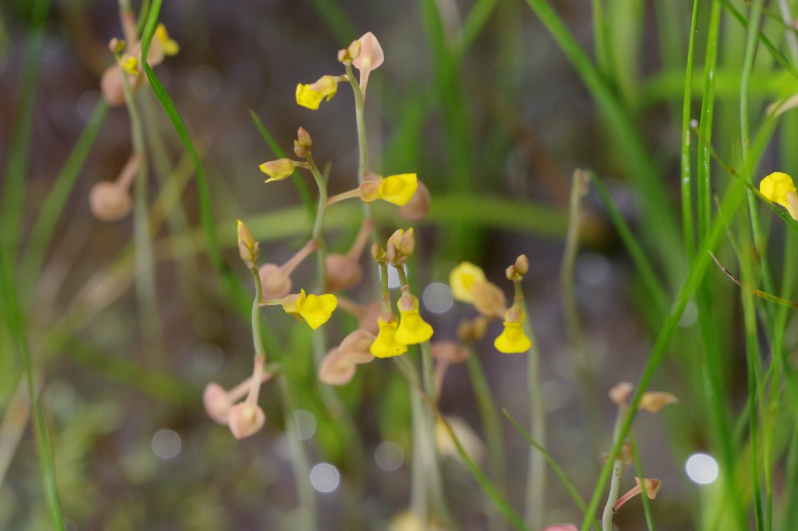 湿原で見かける、とても小さな黄色い花。 その名も、言い得て妙なミミカキグサ。 木道から見下ろす湿地に、わんさかと咲いていた。 |
