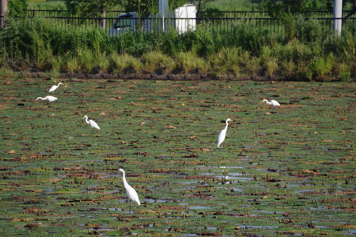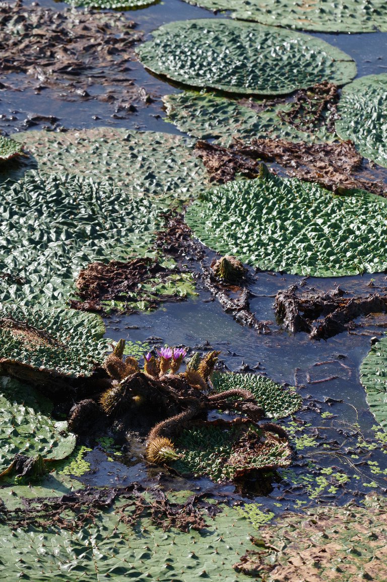撮影雑記: 兵庫県の平野部のため池で、初めてオニバスの花を見たのは、もう、20年ほど前になります。 その頃撮った写真がこちら。 → <2005年10月> オニバス その数、数年おきに2、3回訪れたのですが、オニバスの姿はありませんでした。 このため池のオニバスは絶えてしまったのかな?と思っていたのですが、3年ほど前、オニバスが茂る ため池というネット記事を見つけ、ここのオニバスが復活したことを知りました。 2022年に訪れたのですが、オニバスはいちめんに茂っていたものの、時期が遅かったのか、花は一つも ありませんでした。 そして、2023年、こんどこそはと訪れて、やっと、花に会えました。 ![]() びっしりと、広いため池全体を覆う、オニバスの葉。 葉の上には、シラサギが数羽とまっていて、獲物を狙っていました。 ![]() 葉の間を丹念に探すと、ところどころ、葉っぱのあいだから、あるいは、この写真のように、葉っぱを を突き破って、花が咲いていました。 ![]() 花以外は、葉っぱも、茎も、トゲトゲのいかつい姿です。 ![]() 花は、ちらほら見るのですが、ため池の周りはフェンスで囲われていて、あまり近寄れません。 望遠でいちばん大きく撮れたのが、トップの花の写真です。 20年前は、もっと、近くまで寄れたんですけどね。 |