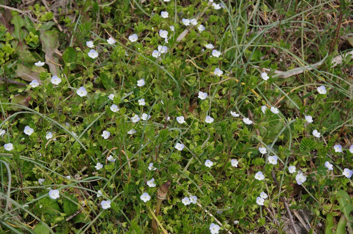 撮影雑記: 春咲は、オオイヌノフグリの季節です。 あっちの田んぼ、こっちの畑、その辺の道ばた、いろんなところで咲いています。 いちめんに咲いたオオイヌノフグリは、とてもきれい。 でも、漫然と写真に撮っても、メリハリが無い、ぱっとしない写真になってしまう。 何かアクセントになるものが必要です。 トップの写真は、僅かに遠くの稜線とヒメオドリコソウを入れ、下から見上げるようにして撮りました。 ![]() こちらは、土手いちめんを上から見下ろすような写真にしました。 やはり、僅かに見える田んぼと点在するヒメオドリコソウが、いいアクセントになっていると思います。 ![]() 別の場所で見つけた、白花のオオイヌノフグリ。 ごくたまに、白花も出現します。 |
