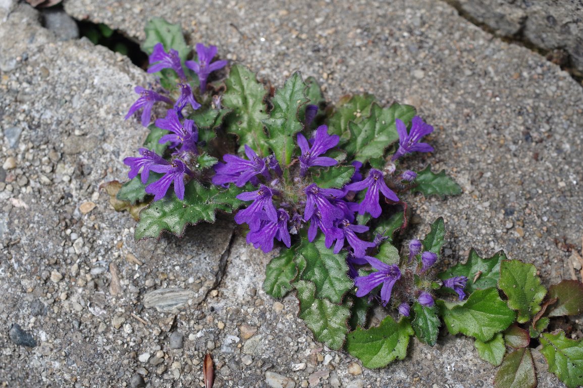 もはや、ちょっと懐かしい、コロナ禍の頃。 非常事態宣言で外出を控えろと言われ、家の近くをたくさん散歩した。 側溝のちょっとした隙間に、キランソウが張り付くように咲いていた。 |