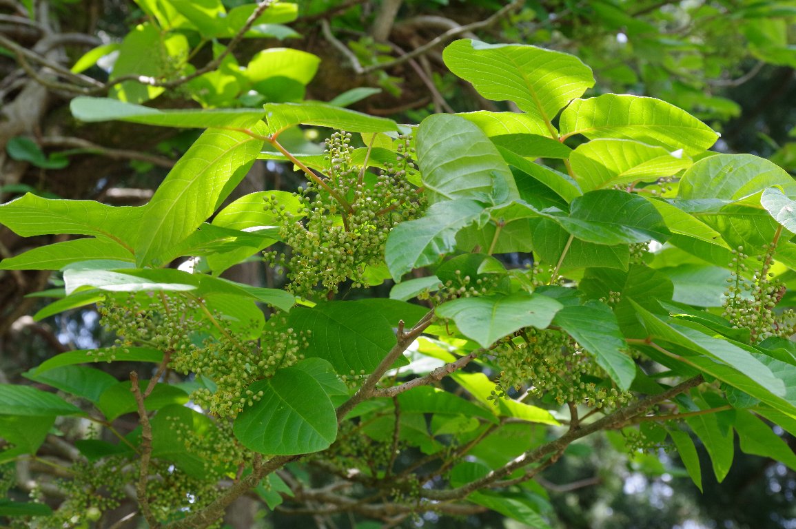きれいな若葉を広げた、細かい花が咲いていた。 蔓の様な、木の様な、この植物はいったいなんだろう? 調べたらツタウルシ。秋には、真っ赤に紅葉することだろう。 |