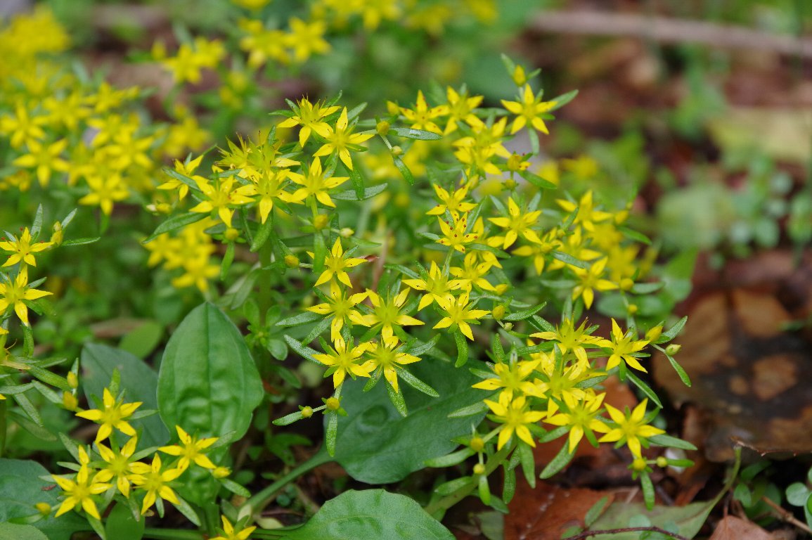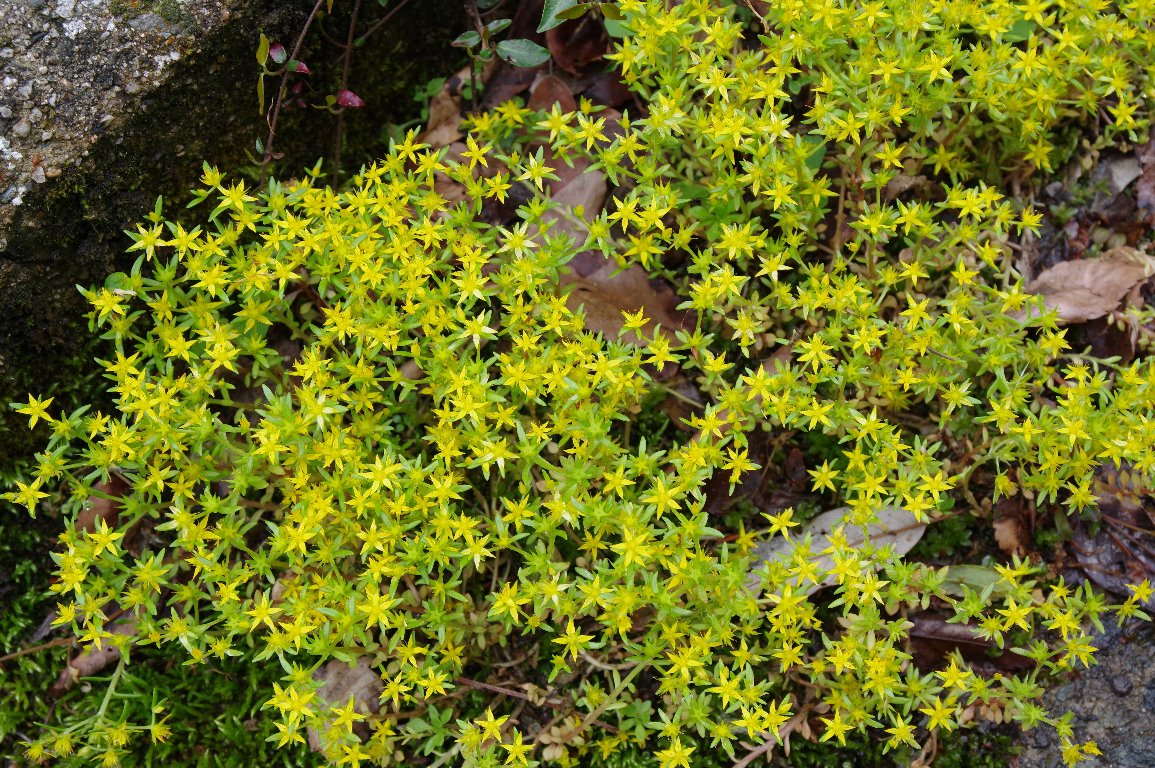初夏の頃になると、沢筋の湿った岩場などに、ヒメレンゲの細かい黄色い花をよく見かける。 この時は、コンクリートの古い橋のすみに、たくさん咲いていた。 |