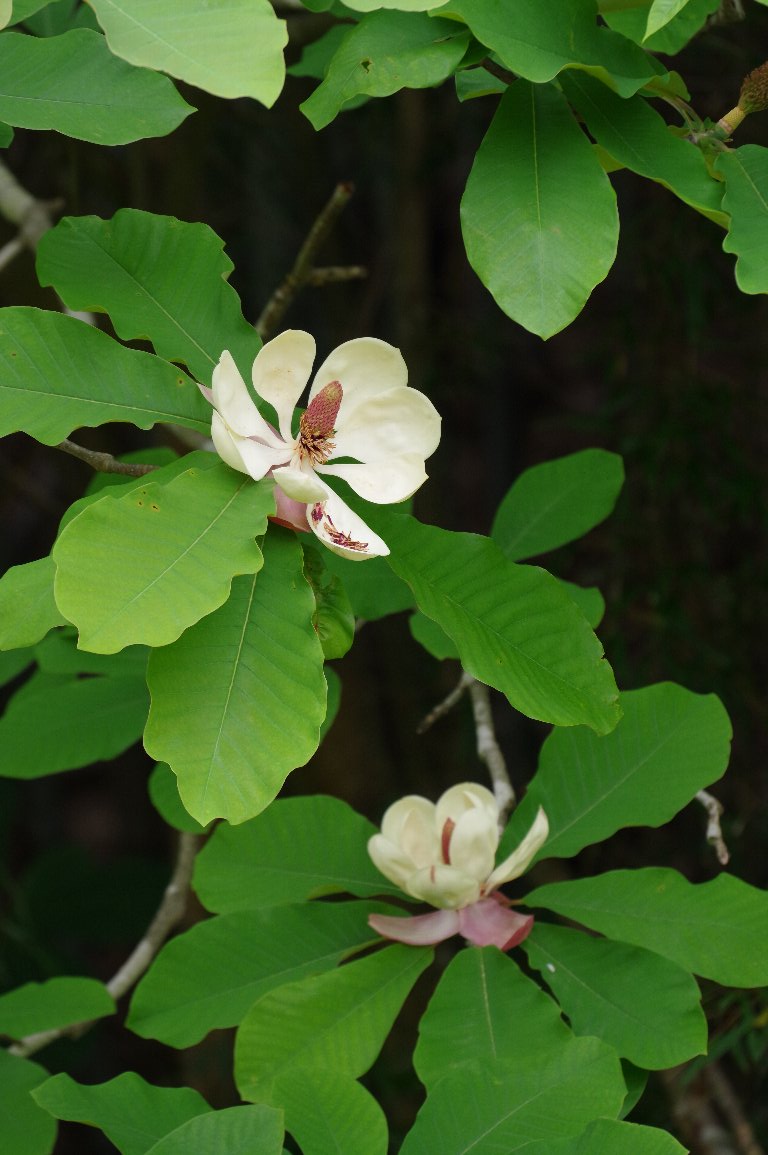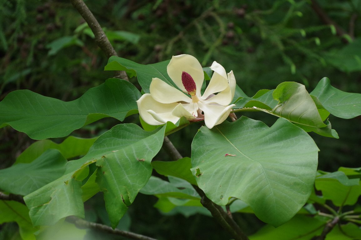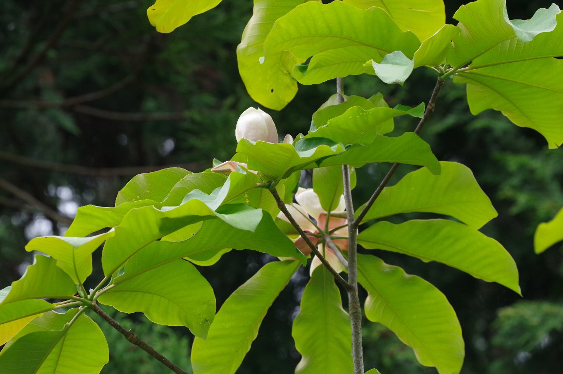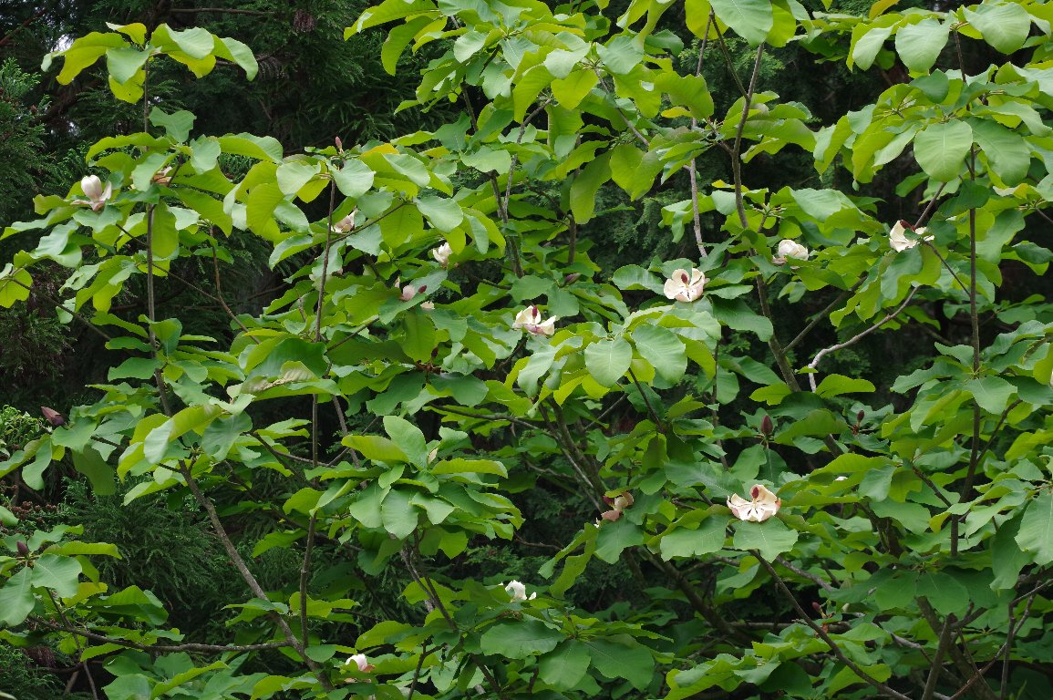 初夏のころ、山の中の高い木の上に、大きな美しい花を咲かせるホオノキ。 久しぶりに、その美しい姿を、ほど近いところから見ることができた。 |