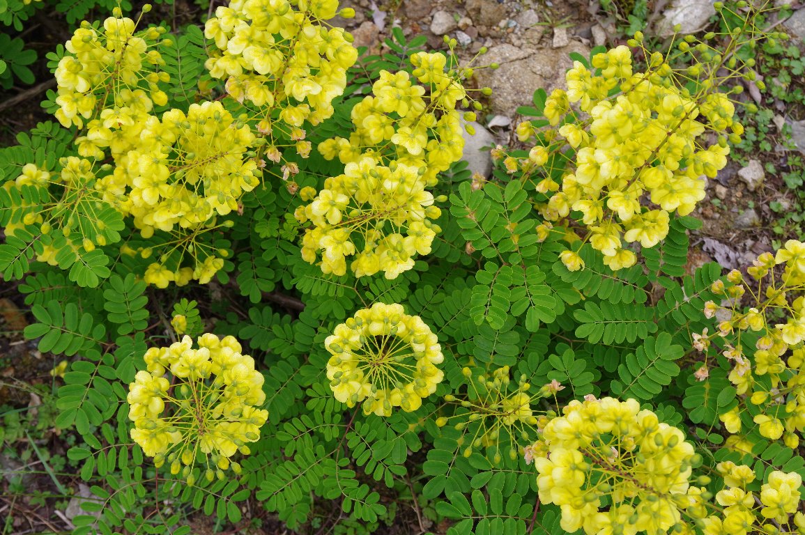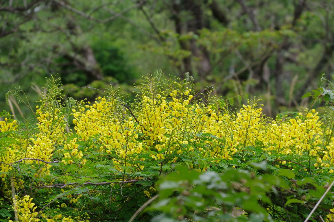 日本の野山に自生する花で、最も豪華に咲く花のひとつが、ジャケツイバラだと思う。 ガレ地いっぱいに枝を広げ、大きな黄色い花を密に咲かせている姿は、いつ見ても、 華やかで、迫力満点だ。 |