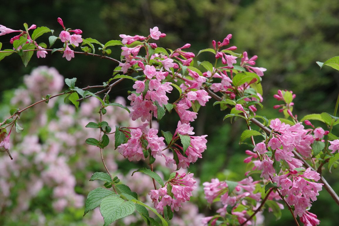 タニウツギも、豪華に咲く花のひとつだ。 薄桃色の花を、伸ばした枝に、これでもかと、びっしり。 山でこの花を見ると、一服の清涼感を与えてくれるようだ。 |