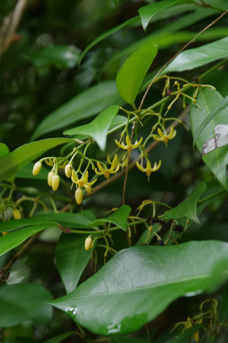 撮影雑記: ここ最近、主に西日本、特に、近畿や中国地方で見られる珍しい花の情報を収集して、探し歩いています。 いろいろ、初めて見る花に会いました。 ホンゴウソウ(兵庫) <2023年7月>(大暑) ミズオトギリ(兵庫) <2023年7月>(処暑) キチジョウソウ(大阪) <2023年11月>(立冬) イナモリソウ(兵庫) <2024年5月>(小満) モロコシソウ(三重) <2024年6月>(夏至) シロシャクジョウ(滋賀)<2024年9月>(白露) オガタマノキ(和歌山) <2025年2月>(立春) サカキカズラ(兵庫) <2025年5月>(立夏) そして、今回紹介するチトセカズラも、そんな花のひとつです。 中国と台湾にも分布しますが、日本では兵庫県と中国地方の一部だけという、不思議な分布をする植物です。 少ない情報を頼りに、兵庫県の自生地を探しましたが、見つからず。 岡山県まで足を延ばしました。 ![]() 咲いていました! 想像していたより、かわいらしい花です。 ![]() 全体的には、花のピークは過ぎていましたが、まだ、幾つか咲いてくれていました。 ![]() 下から見上げた、花のアップ。 全くの他人の空似なのですが、上で初めて見る花でリストしたのモロコシソウの花と、よく似ています。 ちなみに、チトセカズラはリンドウ目マチン科(あまり馴染みのない科です)、モロコシソウはツツジ目サクラソウ科です。 ![]() 終わりかけでしたが、けっこうたくさん咲いていました。もっと花が賑やかなところもあったのですが、 すっかり終わっていました。 花のピークのころ、もう一度、見に行かねばと思います。 西日本の珍しい花探し、今年も続けています。 すでに、4種類ほど出会うことができました。 来年の「花の二十四節気」に載せる予定ですので、乞うご期待! |