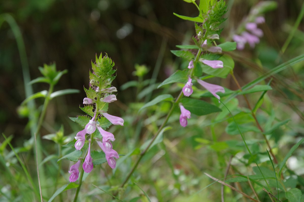 撮影雑記: 田んぼのわき道を散策していると、ママコナの花が咲いていました。 夏の終わりごろ、わりとよく見かける花です。 ![]() 一本の茎に、濃い桃色の筒状の花が、八の字を描くように、幾つも咲きます。 花の先の方に白い模様があり、それがご飯粒のように見えるので、飯子菜(ママコナ)の名がつきました。 ![]() 横から見た様子です。 ファインダー越しに見てるときは、もひとつかなと思うのですが、できた写真を見ると、案外、いい感じに写ります。 写真写りの良い花です。 |