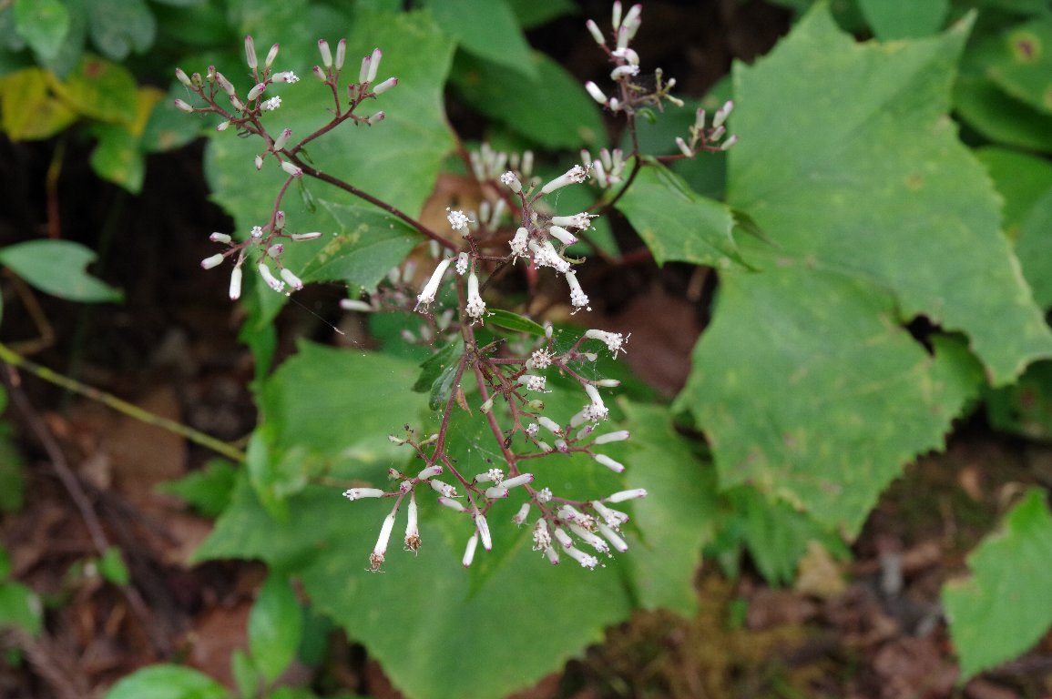 コウモリソウに似てるがちょっとちがう。 カニコウモリかとも思ったが、葉っぱがそれほど丸みを帯びていない。 そして、オオカニコウモリという、別の種類があることを知った。 |