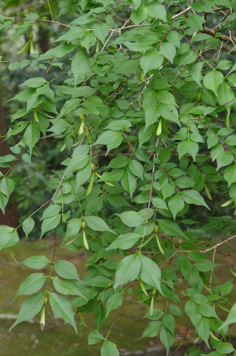 羽根つきの羽根の様な実をつける、ツクバネ。 初めて、実物を見ることができた。 実が落ちるときは、クルクルと回転しながら落ちてゆくそうだ。 |